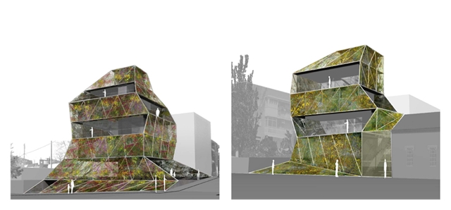 La solución constructiva del cerramiento mediante una fachada vegetal o jardín vertical encuentra una obvia e inmediata relación con el arbolado existente o las plantas trepadoras que crecen en diversas fachadas de los edificios de la zona. Pero no sólo eso. Lo que se pretende es también recuperar y dar continuidad a la memoria de una zona que, a veces, parece haberla perdido.