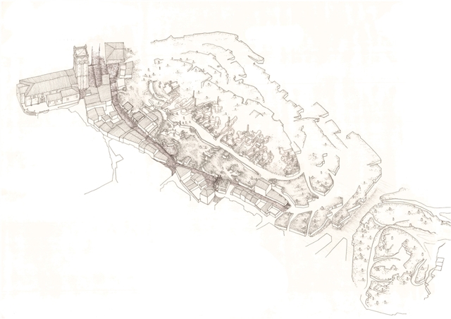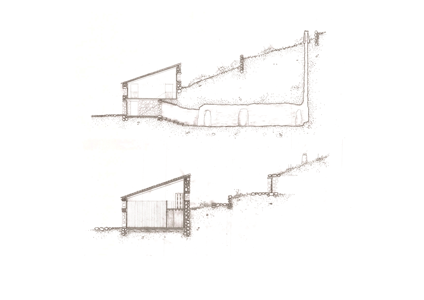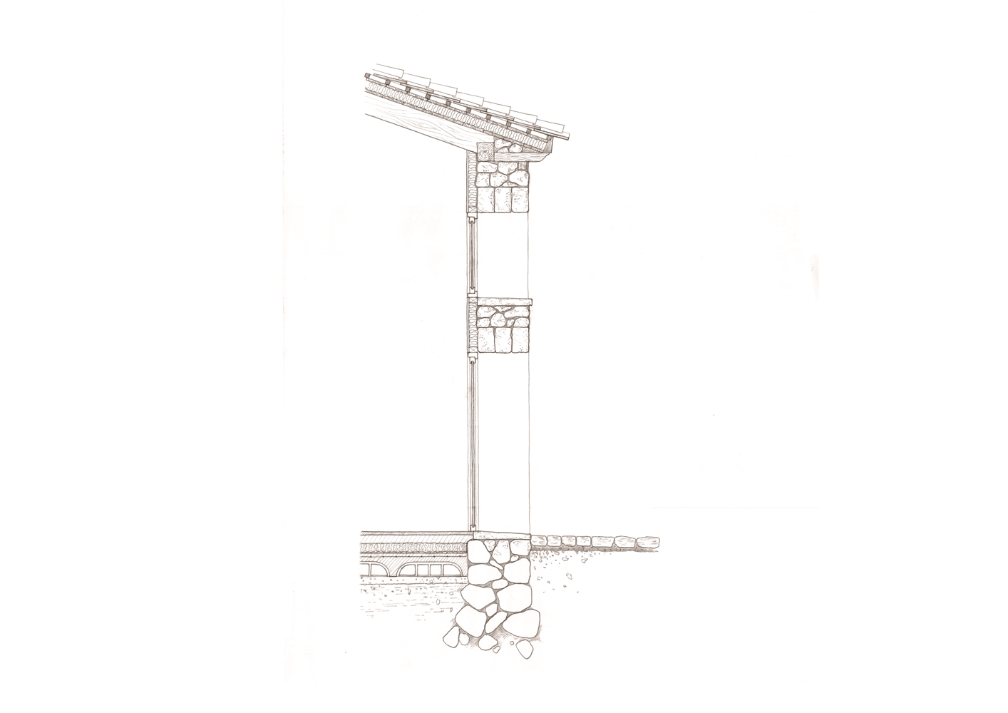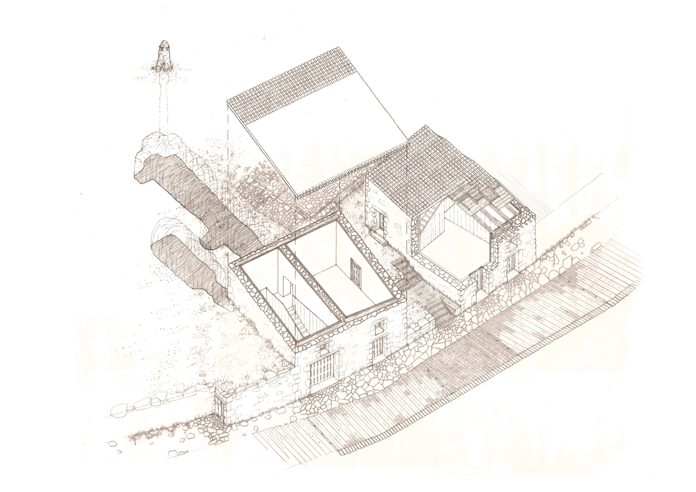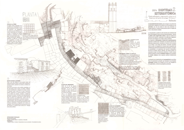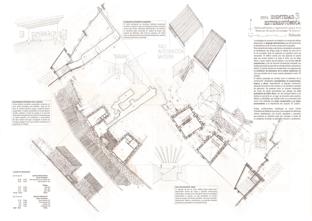 La estrategia de actuación se traslada a la escala del edificio adquiriendo un lenguaje estereotómico que estructura tanto la prexistencia como la nueva construcción propuesta.