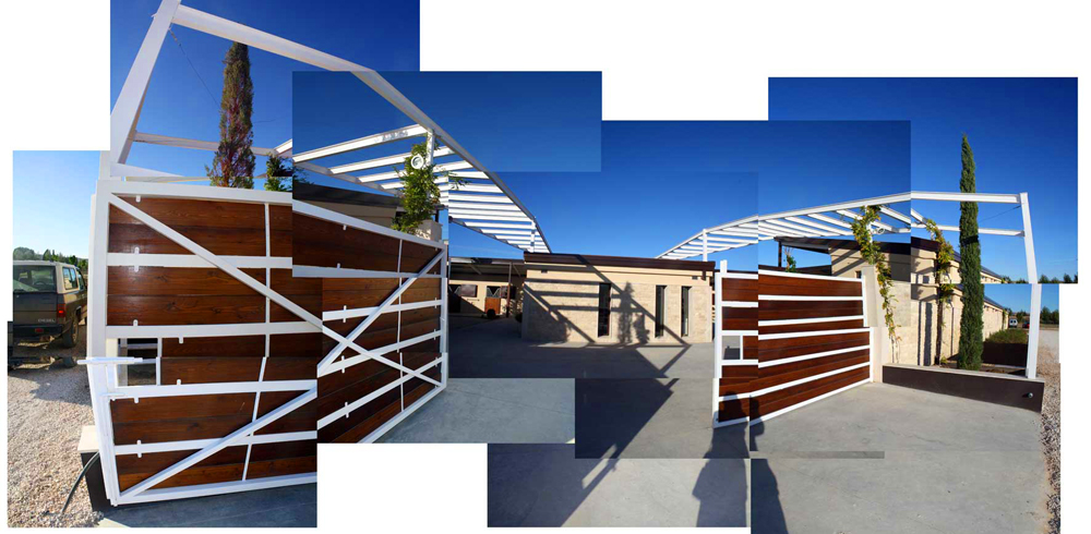 -pérgolas ajardinadas para sensación de confort y provocar corriente por diferencial de presion con un entorno árido y de climas extremos