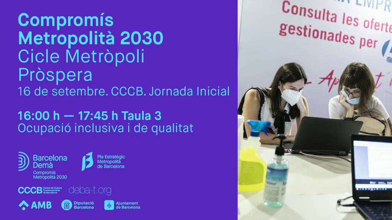 Debate sobre ocupación inclusiva y de calidad de la Jornada Inicial de la Metrópoli Próspera en el marco del proceso participativo Barcelona Demà realizado el 16/09/2021 en el CCCB de Barcelona.