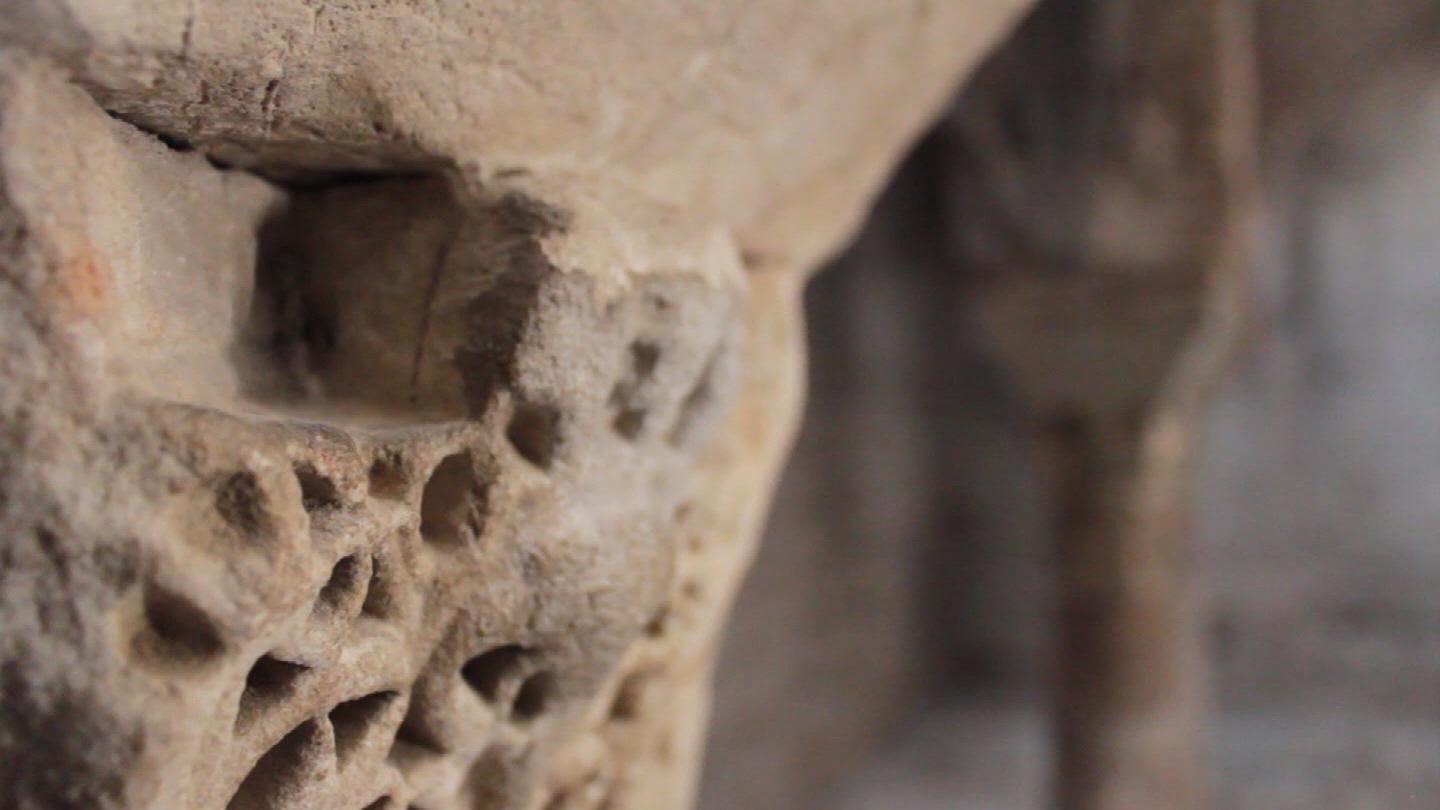 ‘Océano de piedra’ es un cortometraje acerca de la relatividad del espacio, de la memoria y del tiempo, una investigación visual que toma en cuenta la relación entre la sólida arquitectura creada por los seres humanos, y la arquitectura efímera y evanescente del agua. Las imágenes y sonidos nos van guiando de la oscuridad a la luz, del vacío a la presencia pétrea, desde la presencia del tiempo que va dejando sus máscaras inscritas en la piedra, hacia la naturaleza escultórica del agua. En el agua y en el mineral están inscritas las dos memorias, la de la naturaleza, y la del ser humano.