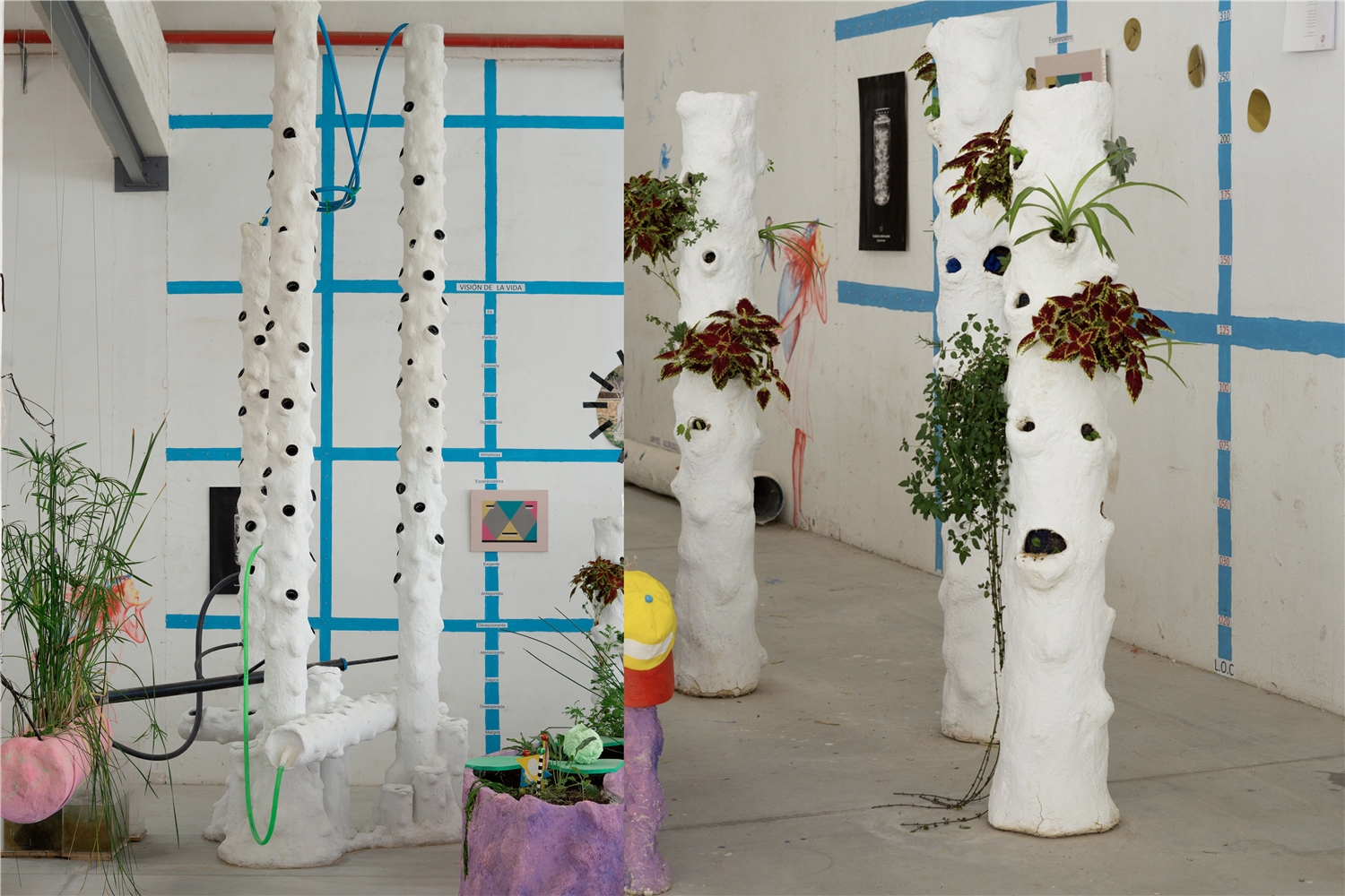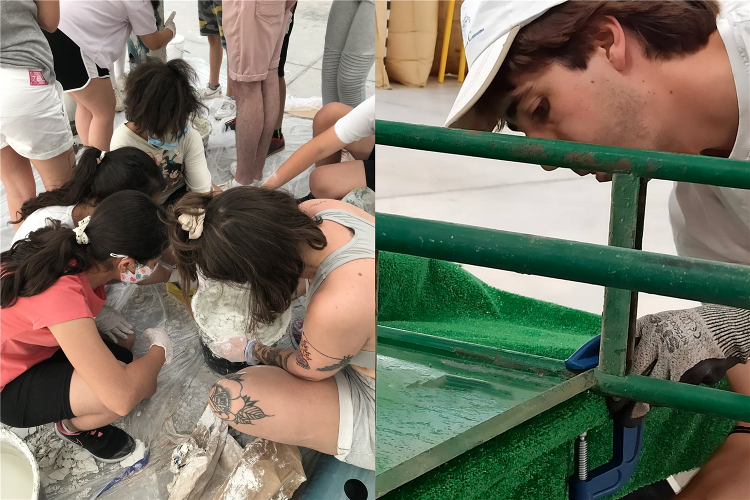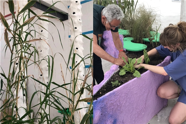 Encofrados desusados, viejo mobiliario urbano, vallas metálicas o tuberías de PVC fueron convertidas en el espacio de cabecera del Secadero durante el verano de 2021. Un proceso de construcción compartido con el Centro de Acogida de Menores Lucentum, el colectivo EDUSI Jove y las personas que curioseaban en los talleres de Jardinería Mutante.