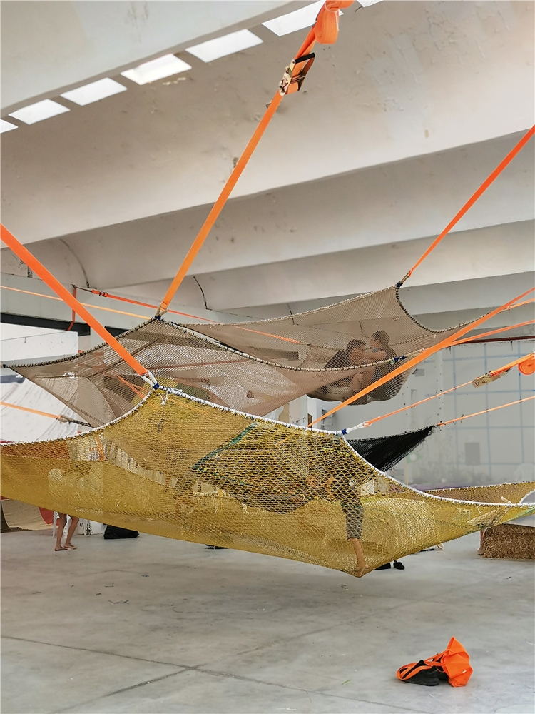 Al explorar el conflicto de los residuos de las canteras, creamos un spa utilizando lodos de mármol. Aprendiendo las técnicas de los pescadores, hicimos un parque infantil flotante con viejas redes de pesca. Exploramos las relaciones entre especies escuchando conciertos en una granja de setas. En otro caso, bailamos en una grieta ficticia de la corteza terrestre, revelando estratos artificiales a partir de subsuelo contaminado. Todos estos proyectos se esfuerzan por crear experiencias significativas que animen a la gente a reflexionar sobre su propio papel y su capacidad de acción.
