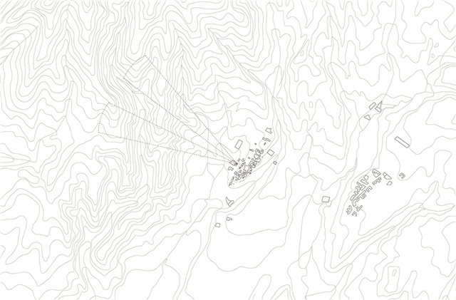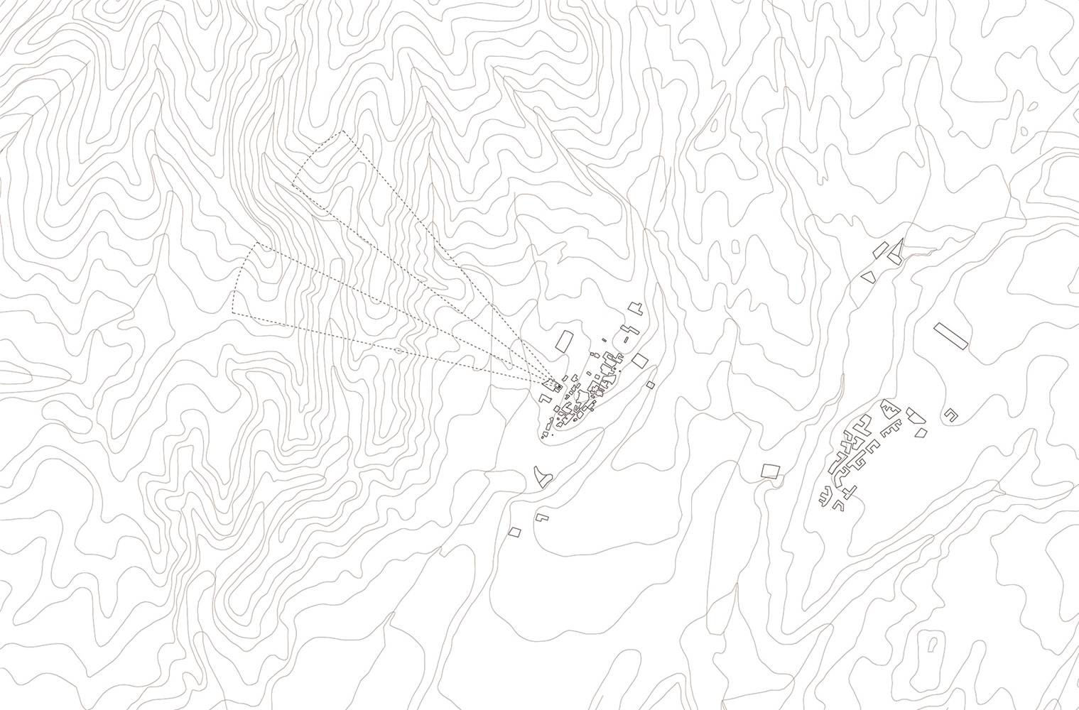 La Post-vivienda en cambio, una terraza exterior soleada para el invierno que también queda resguardada de los vientos mediante la prolongación de muros estructurales, permite el disfrute del paisaje lejano y la absorción de la luz de tarde para las estancias más públicas de la vivienda. Este espacio, más alla de servir como zona de acceso principal al edificio, también constituye el espacio exterior al que poder expandirse el comedor o la sala, diluyendo los límites entre interior y exterior.