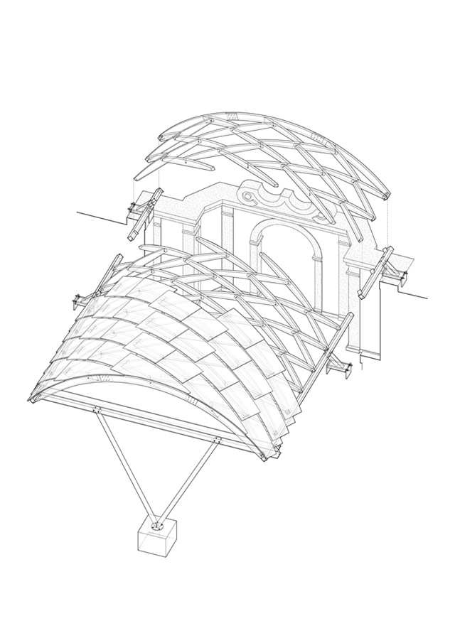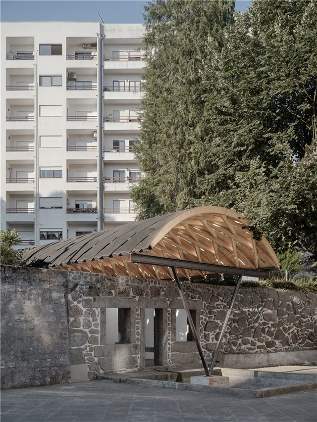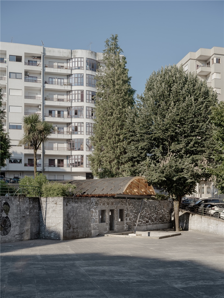 Atlas propone recuperar esta ruina para la comunidad mediante dos acciones: la limpieza y restauración de sus muros, y la instalación de una cubierta ligera que permita acoger, bajo su sombra, las actividades de Braga 25, Capital Portuguesa de la Cultura. Así como Atlas sostiene una bóveda celestial de piedra, la ruina sostiene ahora una bóveda estructural de madera, reivindicando para este lugar marginal el protagonismo que merece.