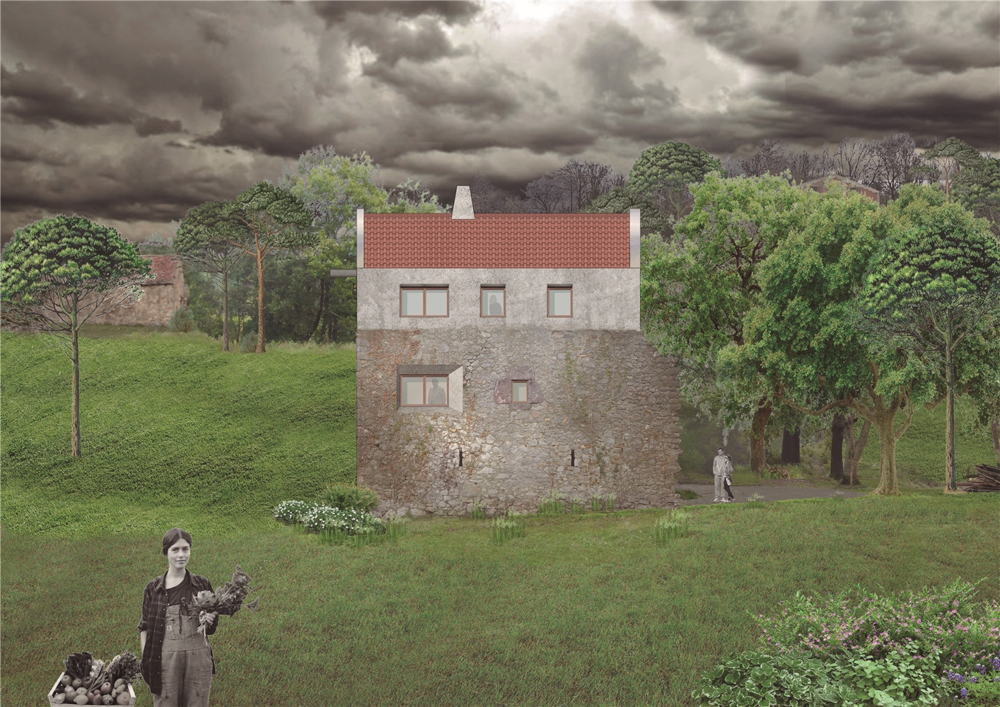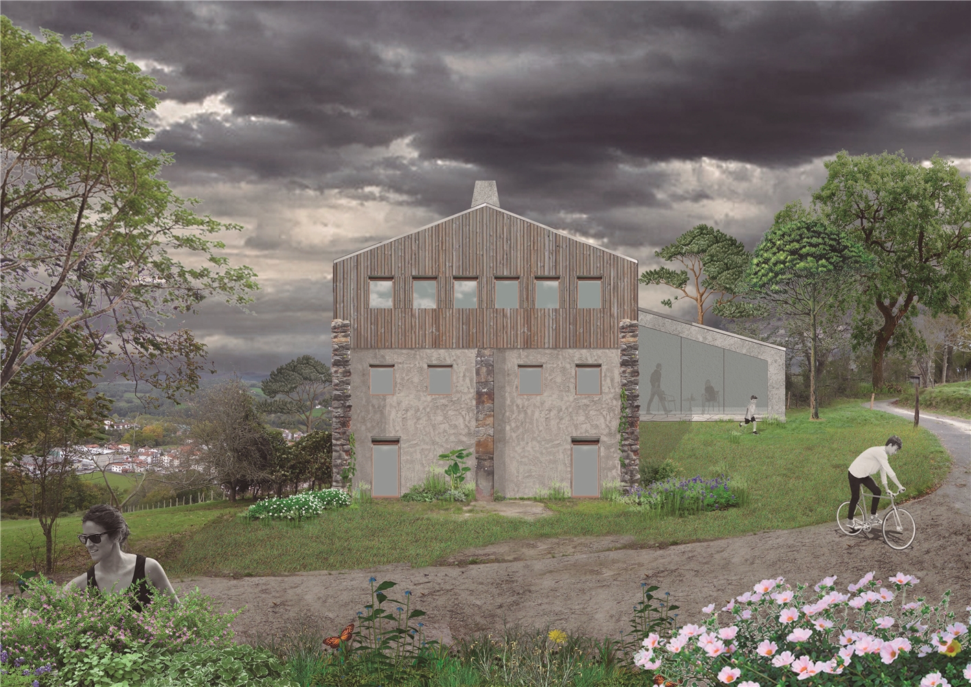 La vida de los baserritarras (gente que vivía en el caserío) no tenía nada de romántico. Su objetivo no era el de construir una imagen romántica del caserío ni del paisaje, puesto que se trataba de una actividad económica. A lo largo de los años, los propios baserritarras adaptaban, modificaban y añadían nuevas partes a sus caseríos según necesidades del momento. La intervención se plantea con el mismo pragmatismo de nuestros antepasados. Añade una capa más en la adaptabilidad constante de este edificio pero entendiendo que la suma de las partes debe seguir contribuyendo a la unidad.