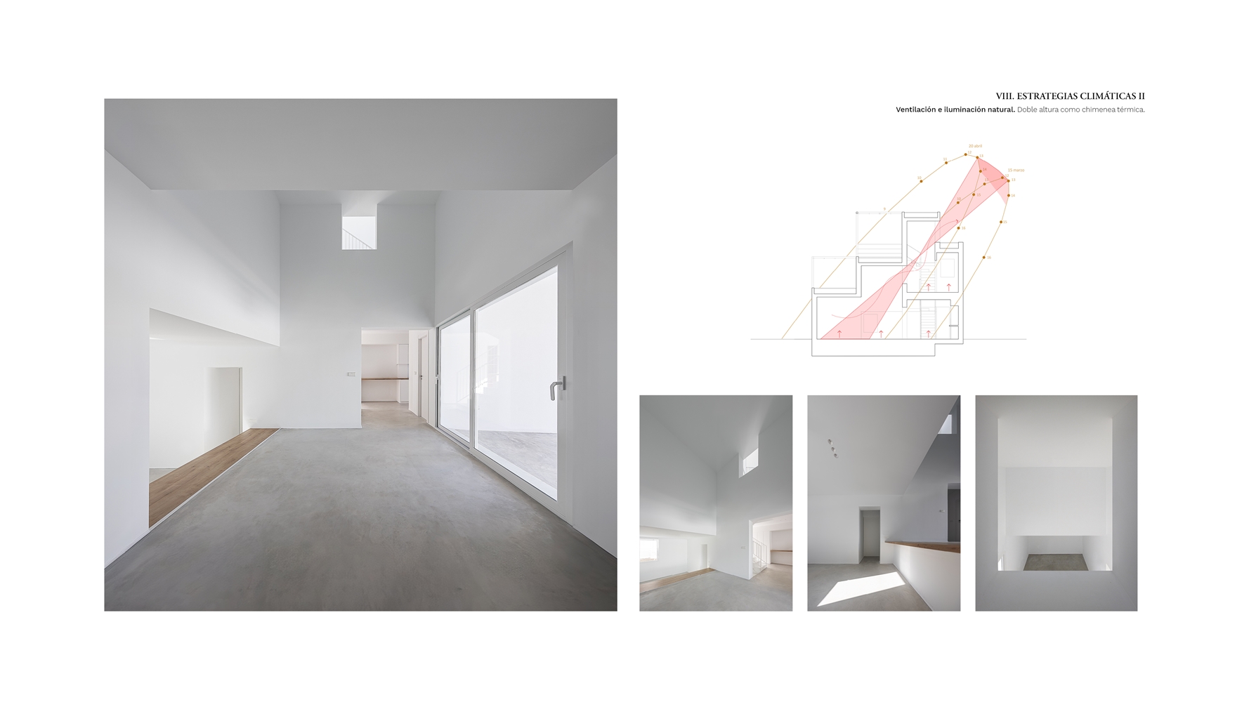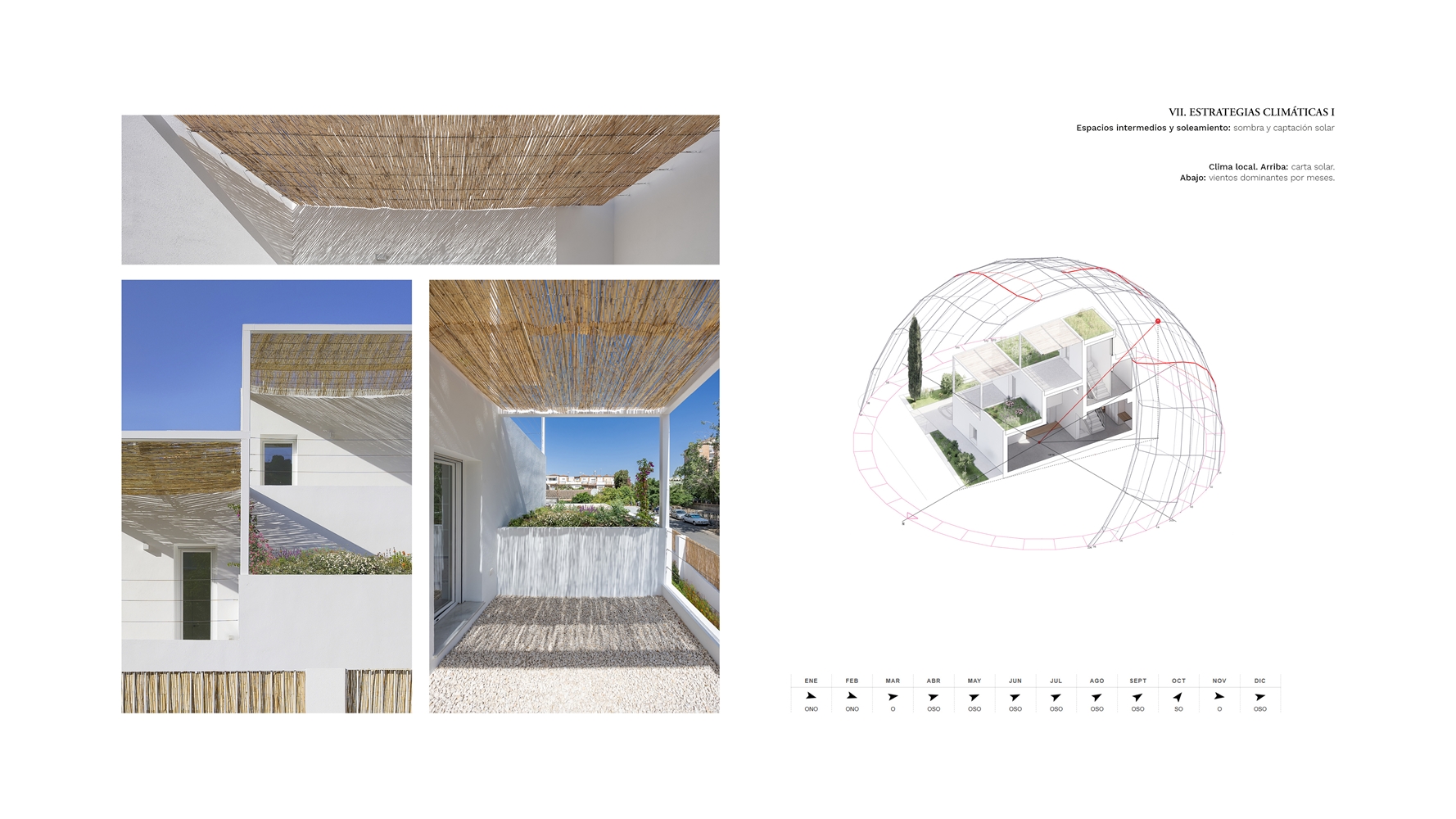 MATERIALIDAD. Los materiales utilizados responden a criterios de sostenibilidad económica y ambiental. Hormigón visto como masa térmica, blanco de siempre en paredes, cañizo local y vegetación autóctona. Una paleta reducida. El proyecto se apoya en la riqueza espacial y la relación con el entorno frente a la sofisticación material.