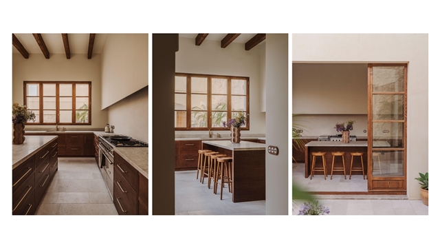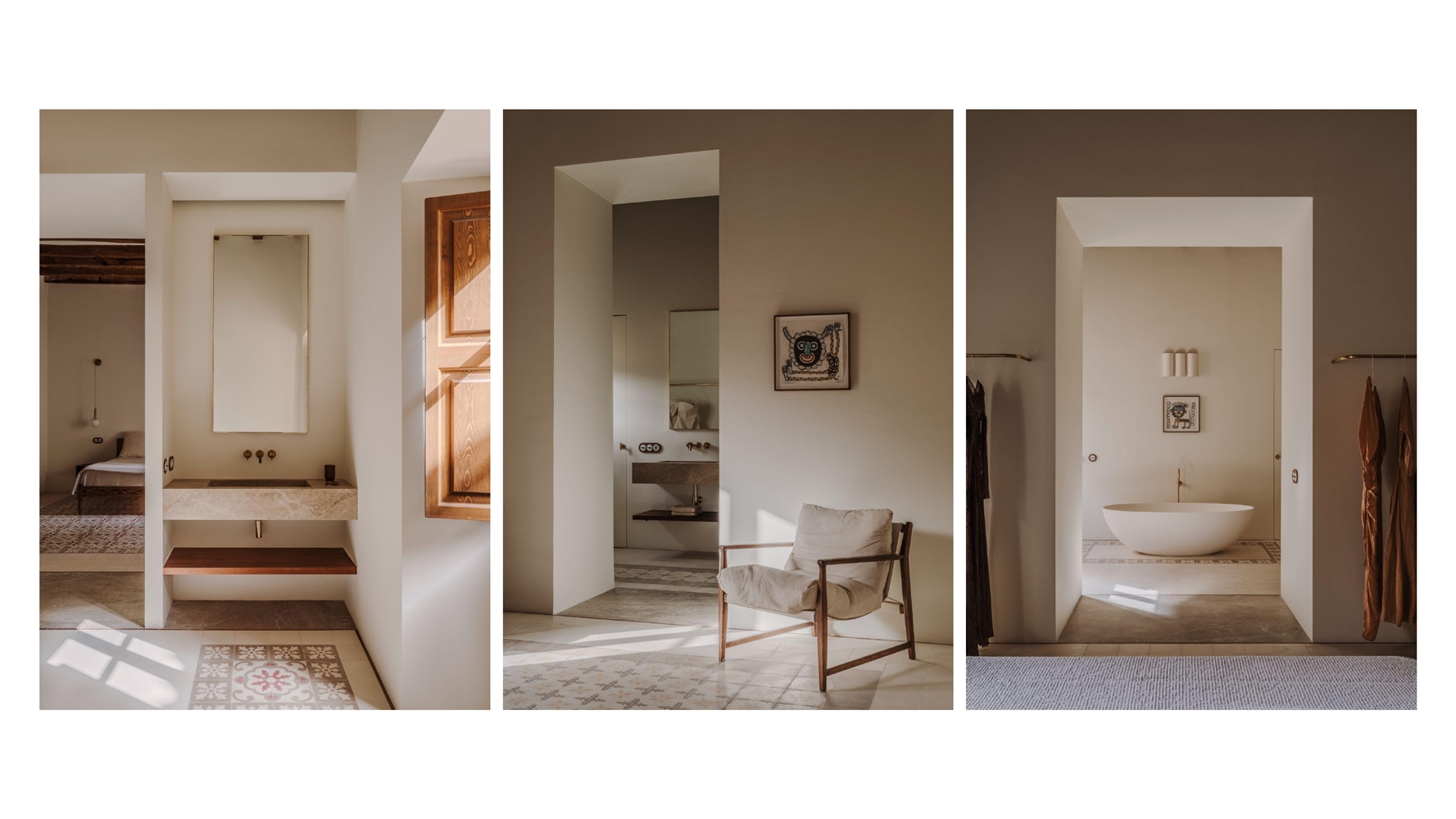 El diálogo con el entorno y con las preexistencias estructura toda la intervención. Más que contraponer lo nuevo y lo antiguo, se ha buscado desdibujar ese límite mediante un trabajo preciso con materiales y oficios locales. La piedra de Binissalem, las baldosas hidráulicas de Huguet, la ebanistería y la marmolería ejecutadas in situ no son solo decisiones materiales, sino una manera de prolongar la memoria constructiva del lugar, incorporando las condiciones contemporáneas de confort e iluminación con naturalidad.
