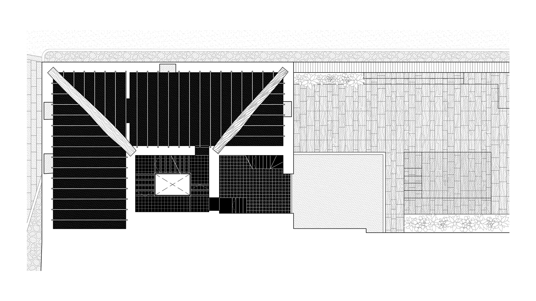 NUESTRO MUNDO — La última planta se presenta desnuda y esencial. La estructura de madera de la cubierta y las pequeñas perforaciones de luz asumen el protagonismo. El espacio se libera de elementos superfluos para alcanzar una atmósfera de calma contenida, casi introspectiva.