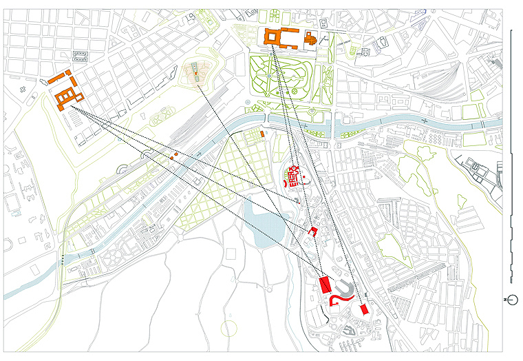 The fair supposes an alteration of the original place and had a big influence in the shape and the development of this urban area, and this influence still exists nowadays. We examine the consequences of the shape, the topography, the vegetation and the constructions. We also analyze the current character of the environment of the Manzanares river and its effect in the fair’s structure that is divided into two pieces with different architectures, the old part and the new part. We start from a graphical and chronological restitution, with different degrees of detail, of the whole fair and the selected pavilions.