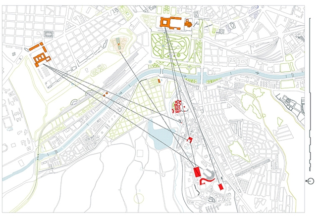 La feria supone una alteración de las preexistencias del lugar, influyendo decisivamente en la configuración y evolución del ámbito urbano, condicionándolo, también hoy en día. Examinaremos la repercusión del trazado, la topografía, la vegetación y las construcciones. El carácter actual de cuña dotacional en el entorno del río Manzanares y la repercusión en la estructura del recinto de su división en dos piezas de arquitecturas tan distintas, como la parte antigua y la parte nueva. Partiremos de una restitución gráfica y cronológica, con distinto grado de detalle, del conjunto y los pabellones seleccionados.