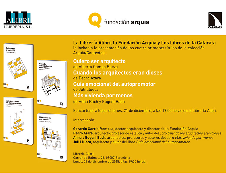 On December 21 at 19h, the ALIBRI Bookstore in Barcelona will hold the presentation of the arquia/contexts collection, a joint publication between the Arquia Foundation and Books of the Cataract, which will involve: