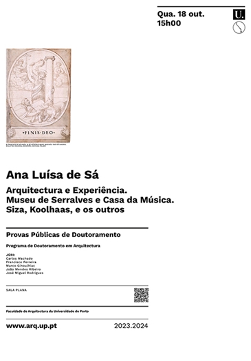 Por lo tanto, la tesis que aquí se presenta compone un estudio comparatista entre Siza y Koolhaas a través del Museu y de la Casa, profundizando en los entresijos de la arquitectura y (su) experiencia, desde el pensamiento de los autores hasta el de los otros que emerge de la obra de los primeros, para comprender qué de esta elusiva, invisible e inefable, de esta longitudinal y multifacética cosa que es la experiencia de la arquitectura se puede, a través de ellos, ver y decir (y especular).