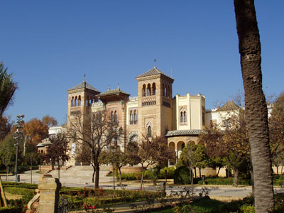 El Museo de Artes y Costumbres populares ocupa el llamado Pabellón Mudéjar que Aníbal González realizó con motivo de la Exposición Iberoamericana de 1.929. El Museo sin embargo, fue creado en 1.972 y en realidad ocupa sólo la planta primera y el sótano del edificio, destinándose el resto a exposiciones. Está dedicado a la divulgación e investigación del patrimonio antropológico y etnográfico andaluz.