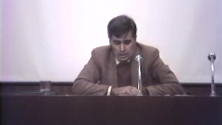 Conferencia sobre la Escuela de Madrid de Arquitectura pronunciada por Antonio Fernández Alba en la Sala de Actos del COAC el 11 de diciembre de 1979 junto a Antonio Vázquez de Castro.