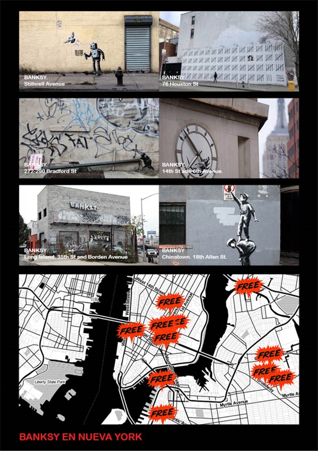 El estudio abarca unos pocos episodios urbanos en torno a las obras de Banksy en Nueva York. Sobre este conjunto de “episodios aparentemente discontinuos, incluso irreconciliables” donde nos enfrentamos a diferentes fenómenos de producción del espacio en torno a la obra de Banksy, se pretende confrontar realidades y reconocer el conjunto como tal, “como el producto de una teoría no formulada” sobre la contemporaneidad, sobre el lugar y el no lugar, sobre la capacidad del arte para reclamar el Derecho a la Ciudad.
