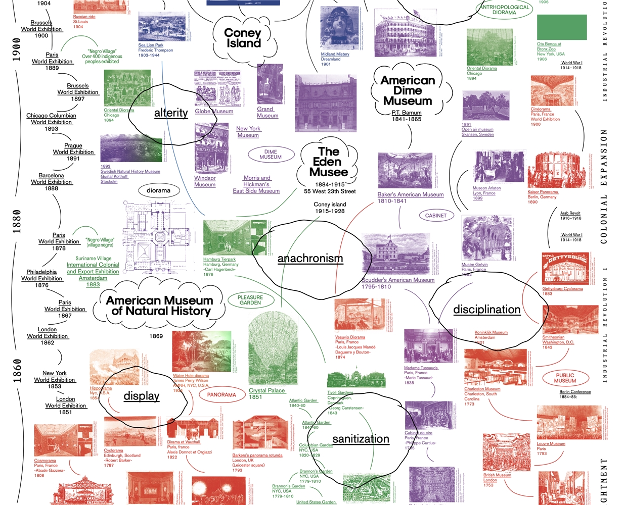 El proyecto "Topographies of Alterity" analiza cómo las arquitecturas orientadas a públicos de masas en Nueva York han servido para estructurar y disciplinar la diversidad social, especialmente a través de espacios como los dime museums, parques de atracciones y exposiciones antropológicas. A través de estos dispositivos espaciales, la ciudad construyó narrativas de alteridad y exotización, representando culturas y cuerpos marginalizados en contextos espectaculares que después serían imitados en muchas otras metropolis.
