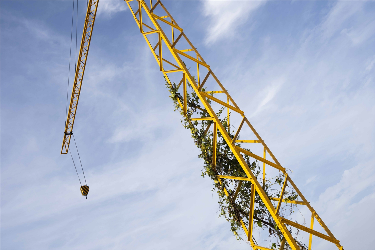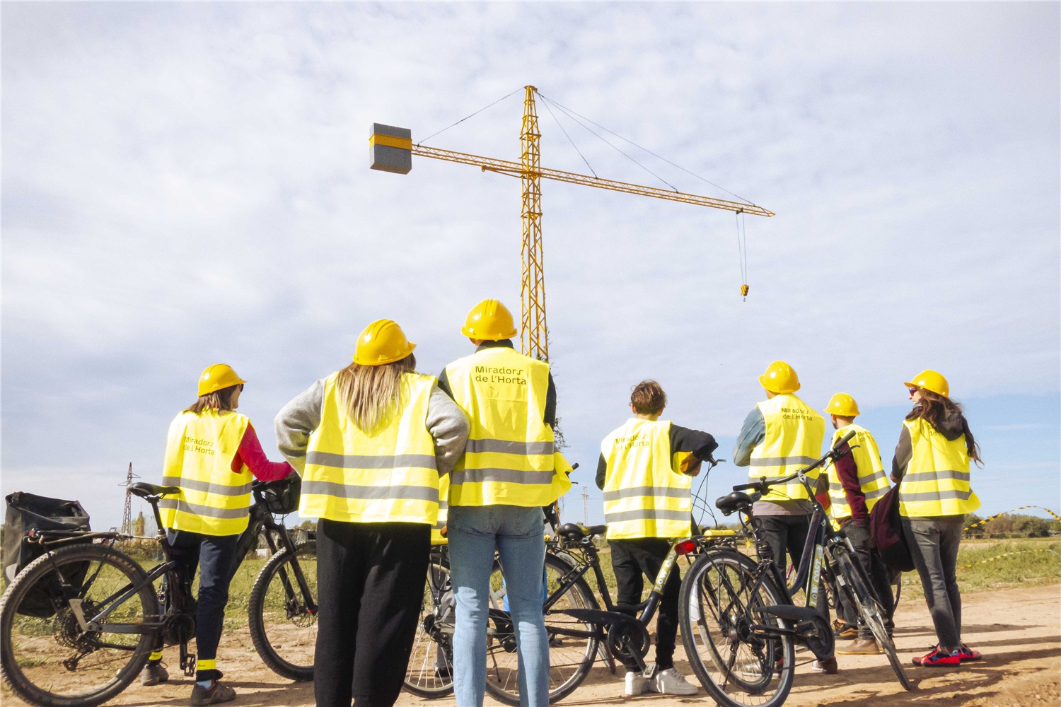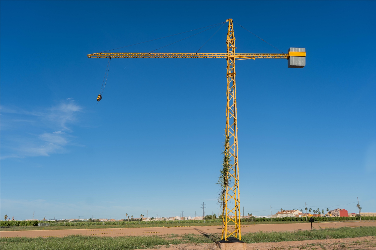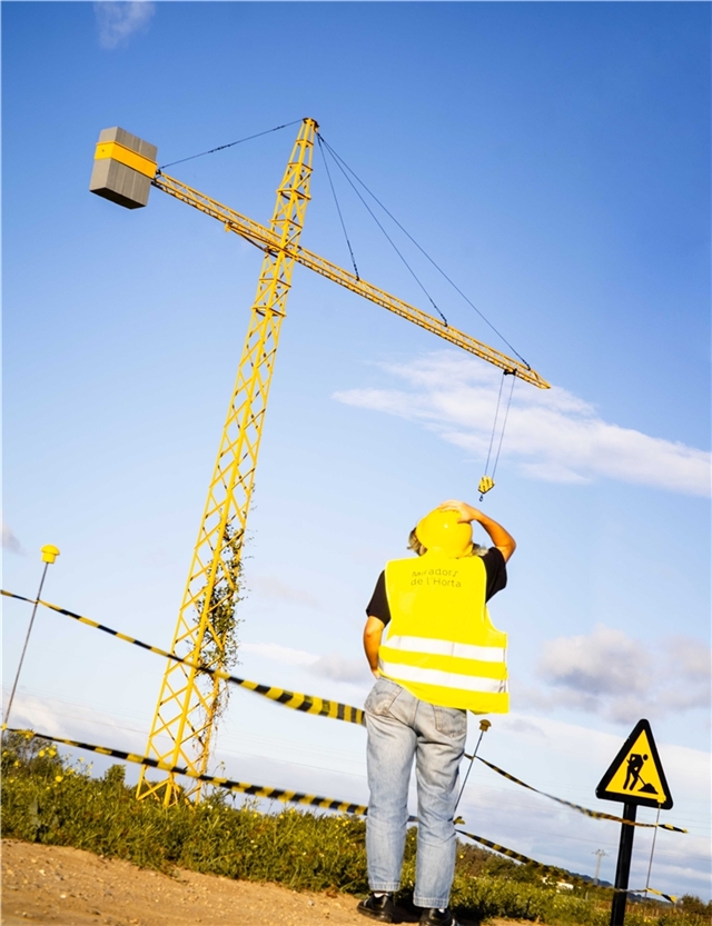 Precaució! pretende advertir de uno de los múltiples y complejos peligros que acechan la supervivencia de la huerta de València: la construcción. El significado atribuido a esta señalética de advertencia forma parte de ese juego dual, al poder ser también, según los ojos que lo miren, el símbolo de un agricultor trabajando la tierra en un campo -como tantos otros- abandonado. Así, desde lejos, la grúa podría parecer verdadera, tanto como los diseñadores que, vestidos de obreros, visitan la obra. ¡Advertencia! ¡Peligro! ¡Otra parcela de suelo rural que se urbaniza! Desde cerca, sin embargo, entendemos su dimensión escultórica de juguete y de farsa: lo duro que es blando, lo pesado que es ligero y la torre que es un poste eléctrico abandonado. ¿Qué pasaría si se urbanizara este campo? Probablemente casi todas experimentaríamos un sentimiento de pérdida, ya que la huerta es un paisaje antropizado, resultado de la acción humana, que forma parte de nuestra identidad. Poner el foco en una de las problemáticas de su desaparición y hacernos reflexionar mediante la alerta eran los objetivos del proyecto.