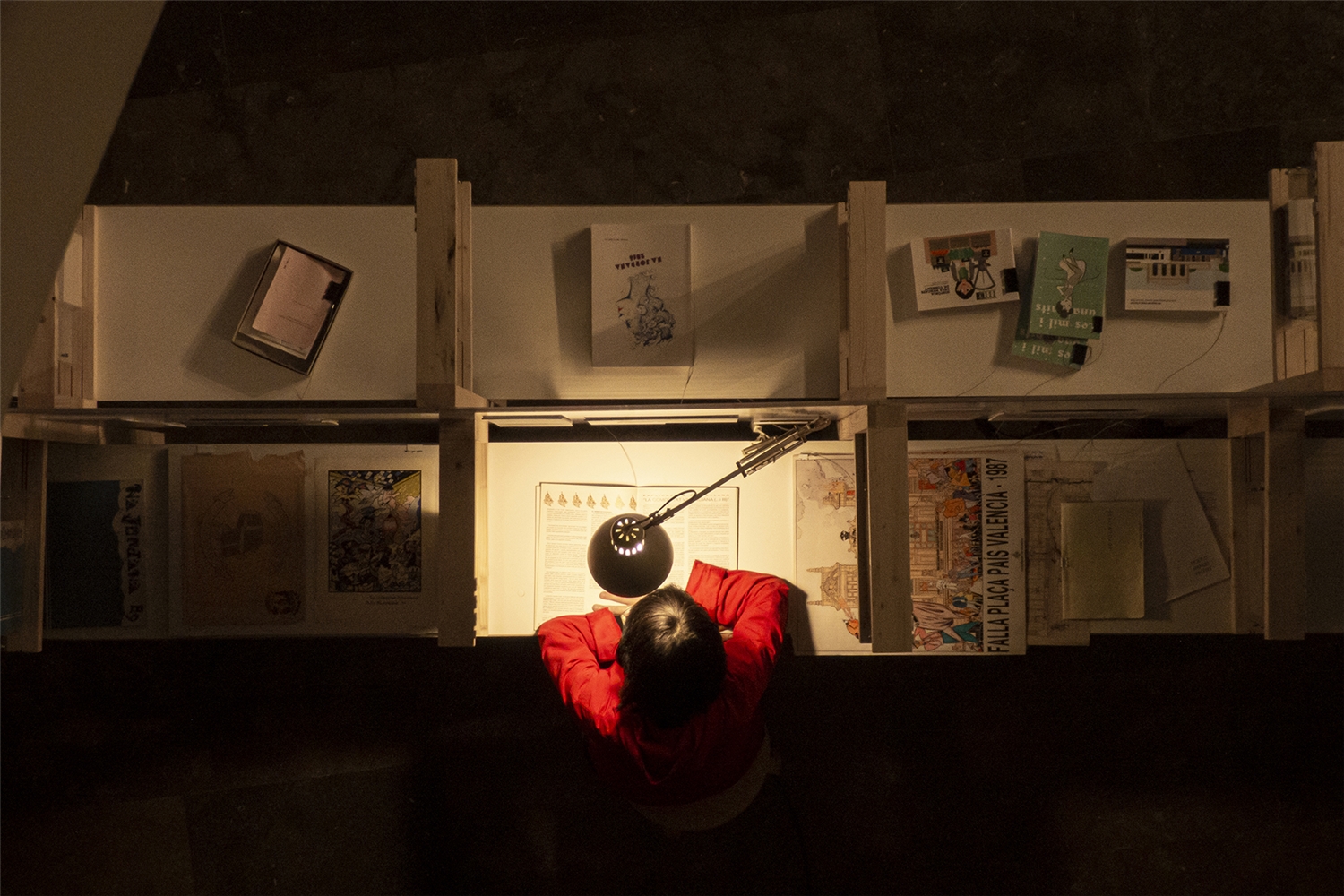 En tanto que esta biblioteca efímera recoge ese archivo de llibrets de falla, se realizó la labor de recoger de todas esas casas y cajones repartidos por la ciudad, así como de diferentes casales, esos libros que guardaban distintas personas, salvándolos del fuego, para formar parte de esta biblioteca temporal, tratando cada llibret de falla como una joya, con su espacio propio de estudio.