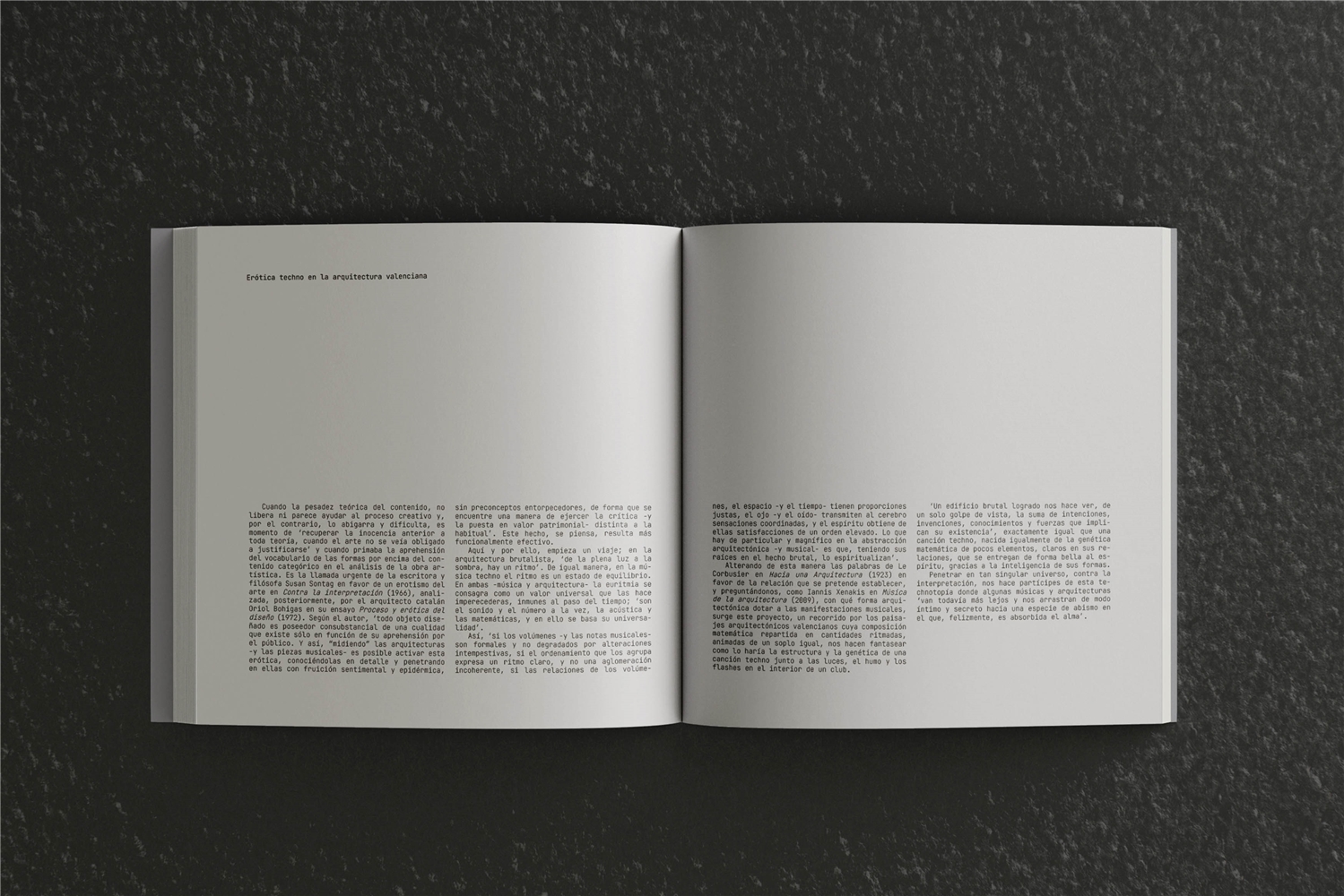 El proyecto, por tanto, no solo documenta, sino que arriesga una reinterpretación de la arquitectura valenciana del siglo XX y XXI, proponiendo un diálogo entre disciplinas aparentemente dispares, como son la música techno y el movimiento moderno, y demostrando que ambas comparten una sensibilidad común que puede ser explorada y comunicada desde nuevas narrativas culturales.