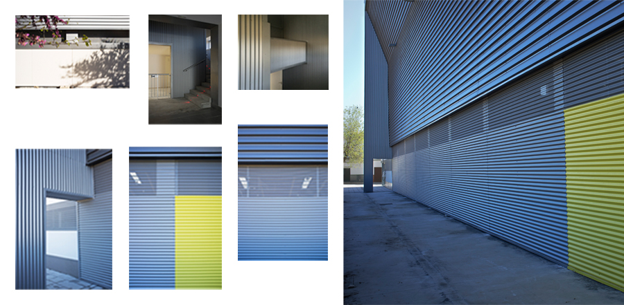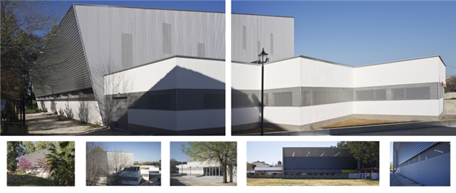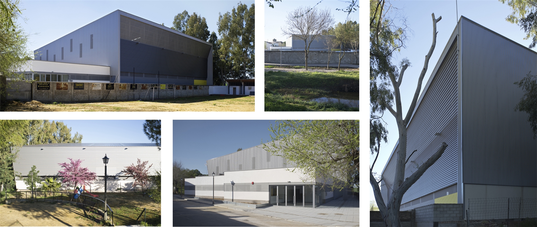 Se ha diseñado un elemento completamente diáfano, que se ejecuta con una estructura metálica de carácter meramente industrial, con cubierta mediante faldones de chapa tipo sandwich sobre correas de perfiles en zeta. La edificación se levanta sobre una solera dispuesta sobre la cimentación y se cierra en sus fachadas con elementos prefabricados y chapas de acero prelacadas. La fachada principal se remata en su interior con un frente de chapas de acero perforadas y carpinterías de perfiles de aleación ligera para dotar de luz natural.