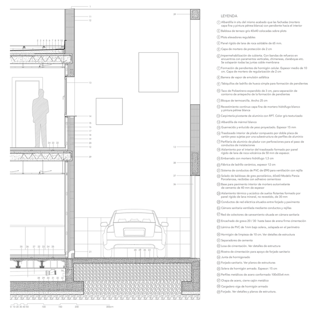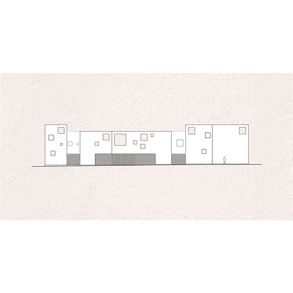 El concepto de “búnker” se manifiesta también en el tratamiento exterior del conjunto. Las falsas fachadas de hasta nueve metros de altura aportan una fuerte unidad visual y volumétrica, reforzando la idea de solidez y continuidad. Los huecos, pocos, pero precisos, se abren estratégicamente para proteger del intenso sol de Costacabana, tamizando la luz y enmarcando vistas concretas del entorno.