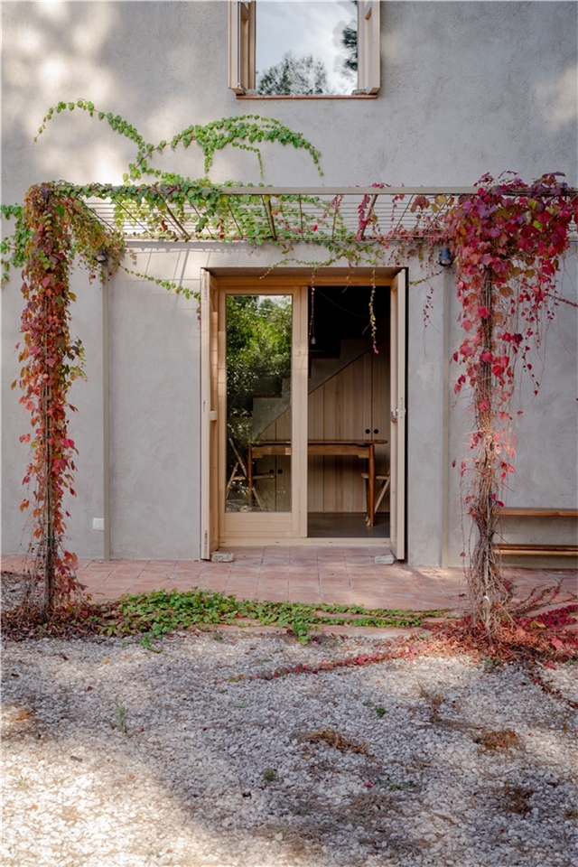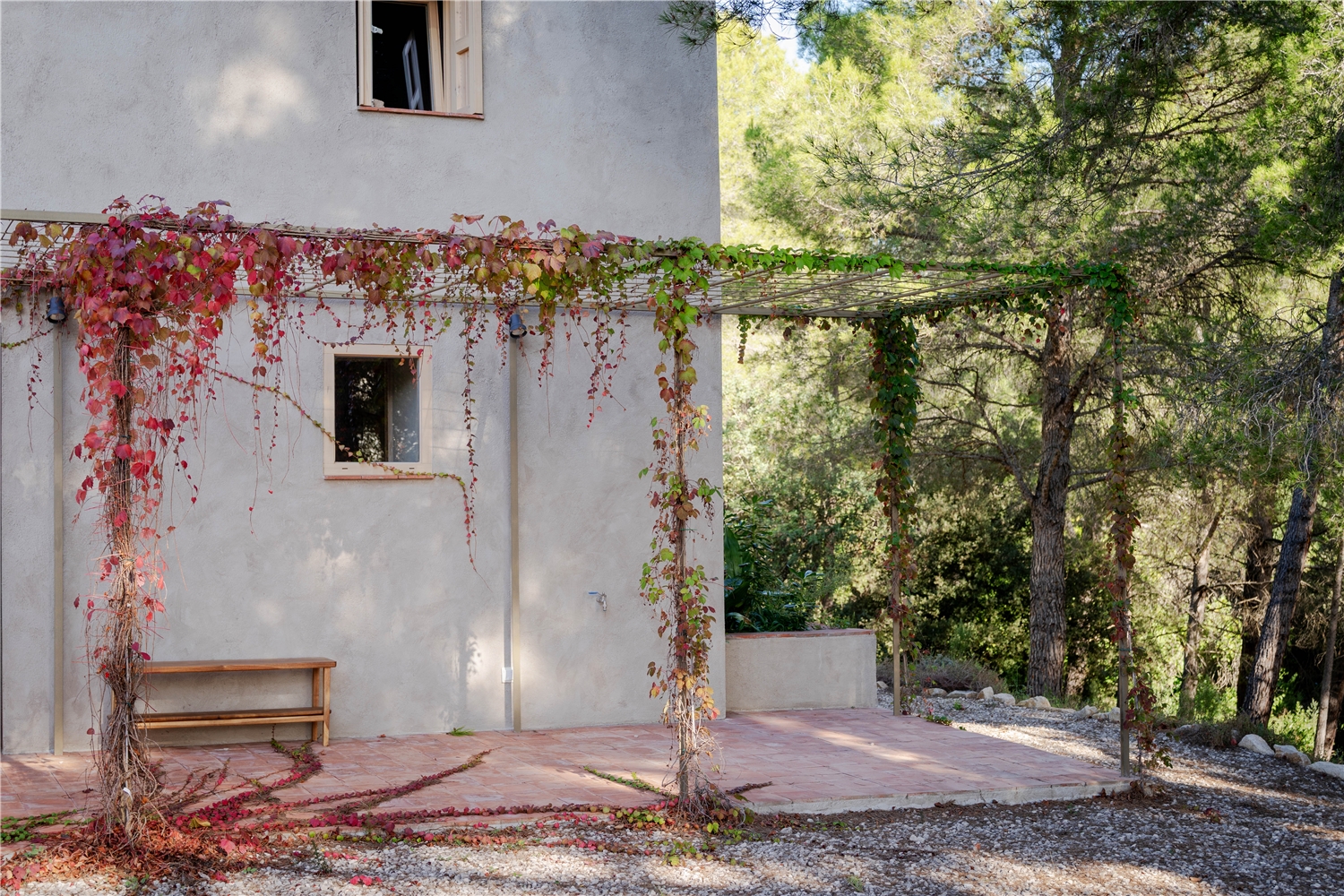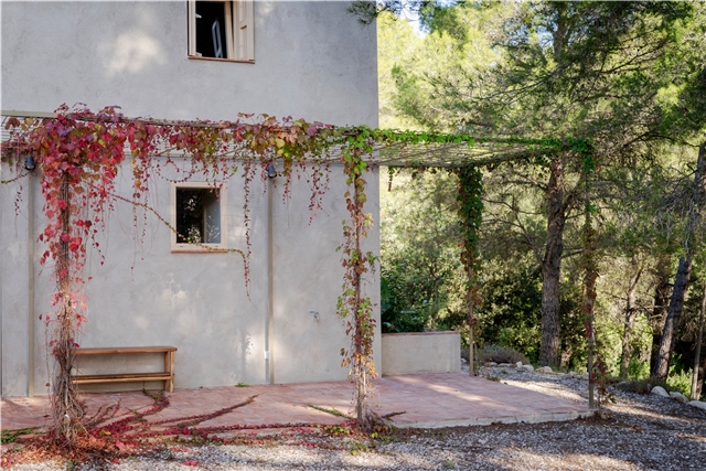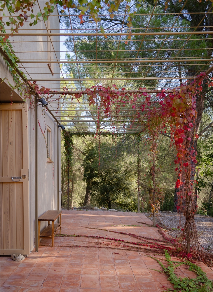 La vivienda preexistente se sitúa entre un conjunto de muros de piedra en desuso, donde ha crecido un bosque mediterráneo de pinos y encinas. La propuesta se basa en recuperar la relación entre la construcción original y este paisaje genérico tan característico en el territorio y en el imaginario popular.