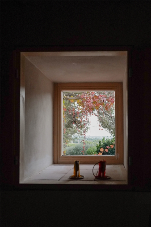 El proyecto se plantea como una intervención que resigue y potencia esta estructura de muros. Por un lado, el programa funcional se apoya en éstos, ocupando el perímetro en forma de una construcción de obra que forma un anillo alrededor de un espacio central. Este perímetro equipado incorpora parte del programa doméstico (cocina, sofá, armario, escalera, etc.). Por otro lado, una nueva piel refuerza el aislamiento térmico envolviendo el edificio, exagerando la profundidad de los muros originales y dotando a la vivienda de una alta inercia térmica. Se mantienen las aberturas originales, de dimensiones controladas y dispuestas con mucho cuidado en relación al entorno, convirtiéndose en cuadros que enmarcan tanto el paisaje inmediato (el bosque, el huerto, etc.) cómo el lejano. La nueva profundidad de los muros permite que estas aberturas se conviertan en espacios, ya sea un umbral de entrada, repisas habitables desde el interior o el área necesaria para que las contraventanas exteriores queden recogidas en el mismo muro.