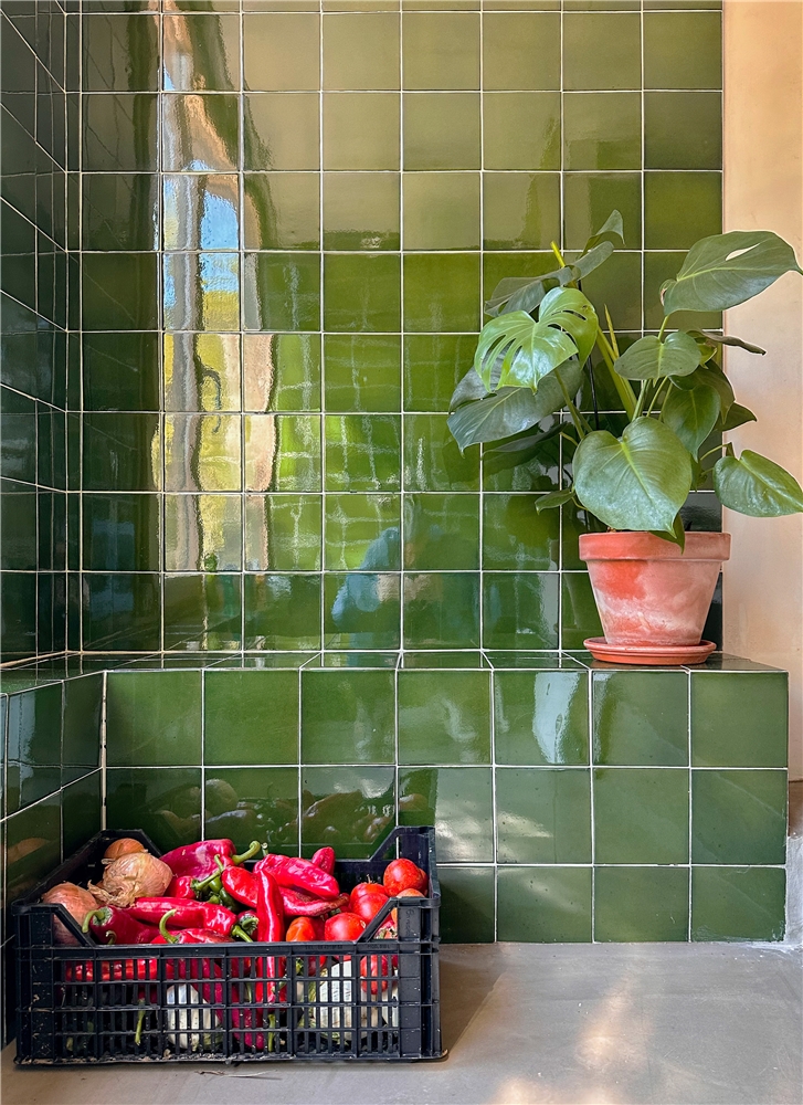 Tras este planteamiento racional, el cobertizo deteriorado se reinventa y se convierte en el baño, entendido como un espacio colorido y abierto al exterior. Una gran ventana llena de luz, colores y reflejos un espacio que normalmente se entiende como una pieza introvertida de la vivienda, aprovechando la intimidad que confiere el paisaje genérico del bosque.