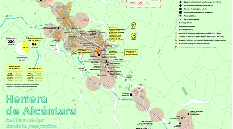 Ser mayor en Sierra de San Pedro es un diagnóstico territorial desarrollado en la comarca de la Sierra de San Pedro (Extremadura) que analiza la relación entre envejecimiento, espacio público y vida cotidiana en un contexto rural. El proyecto parte de la necesidad de comprender cómo las condiciones físicas del entorno influyen en la autonomía, la movilidad y la permanencia de las personas mayores en sus pueblos, con el objetivo de generar criterios técnicos que orienten futuras actuaciones públicas.