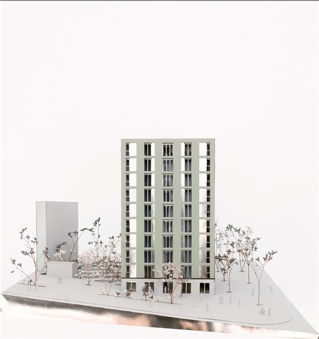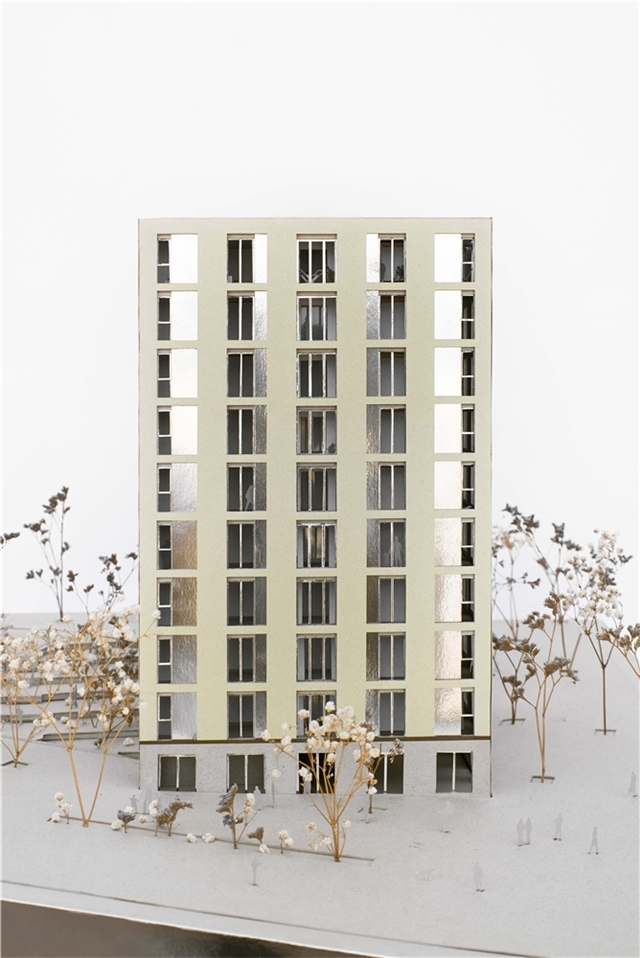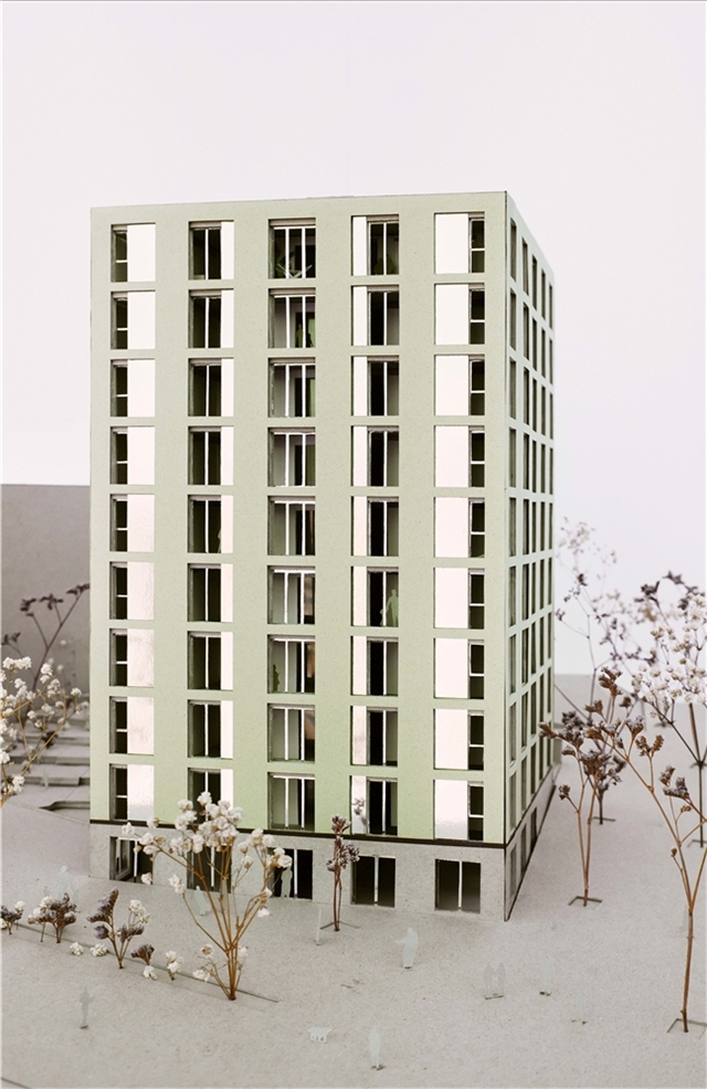 El encargo planteaba un doble reto: responder a las exigencias normativas de la vivienda protegida —destinando una cuarta parte a tres dormitorios y el resto a dos— e incorporar criterios ambiciosos de sostenibilidad, eficiencia energética y calidad espacial.