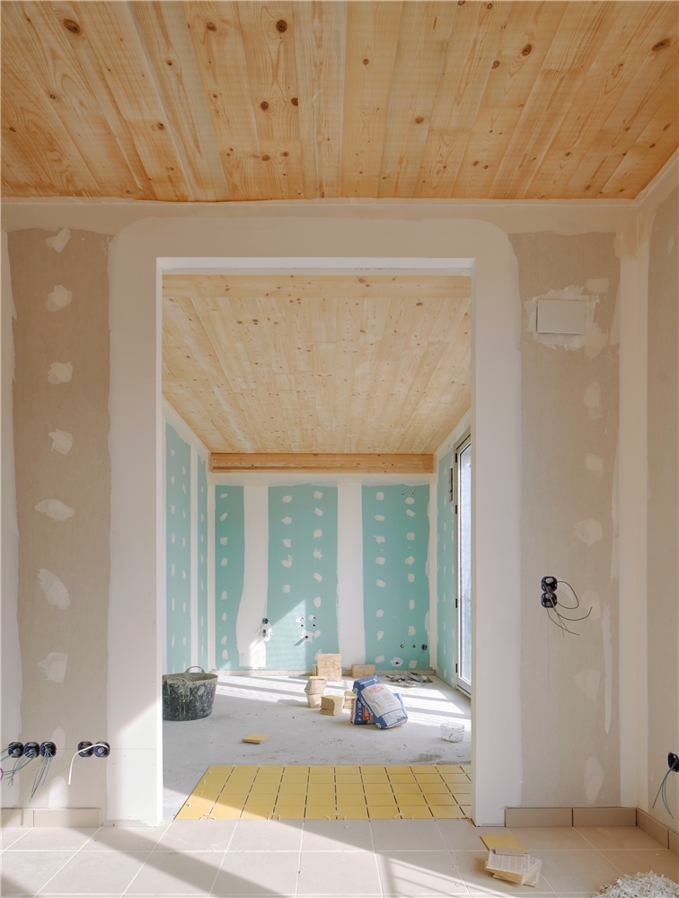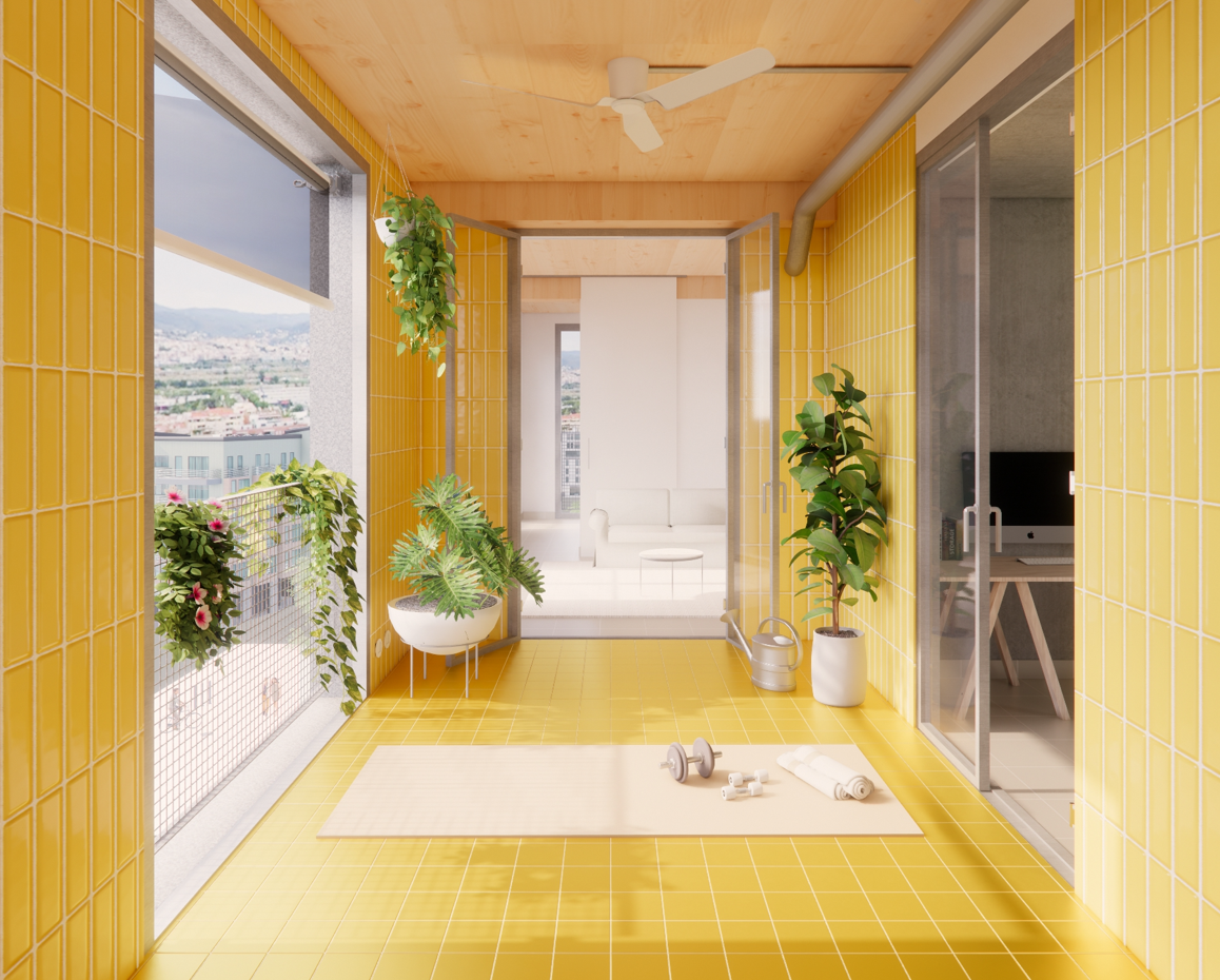 Las galerías semiexteriores, vinculadas a la sala de estar, funcionan en verano como terraza protegida y en invierno como invernadero solar. Actúan como colchón térmico, regulando las condiciones interiores y aportando resiliencia climática.