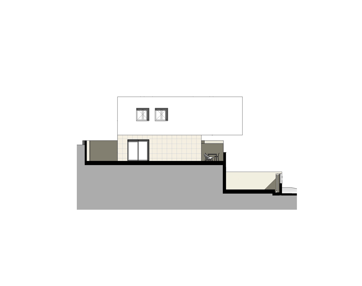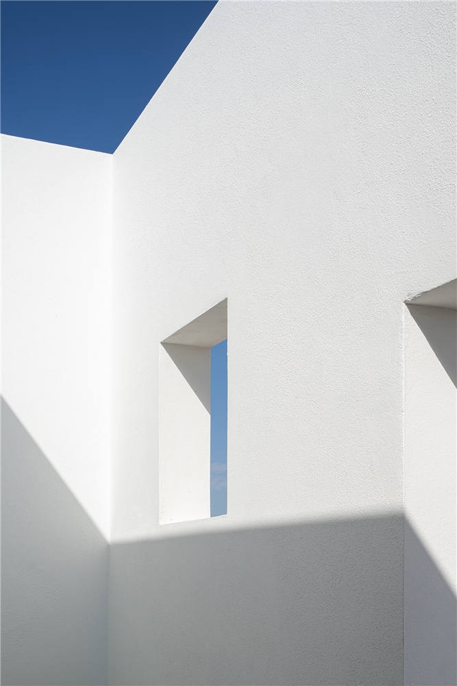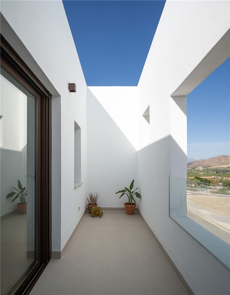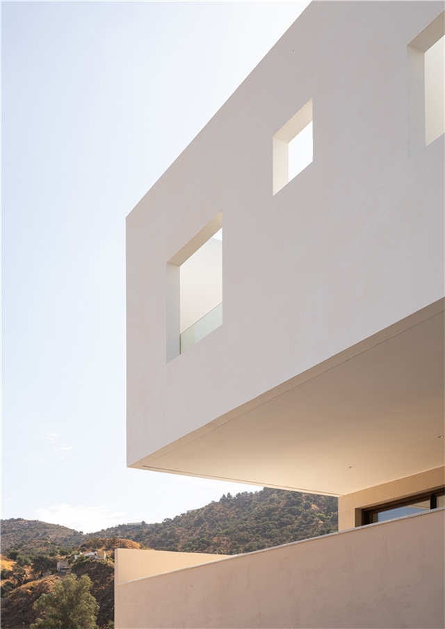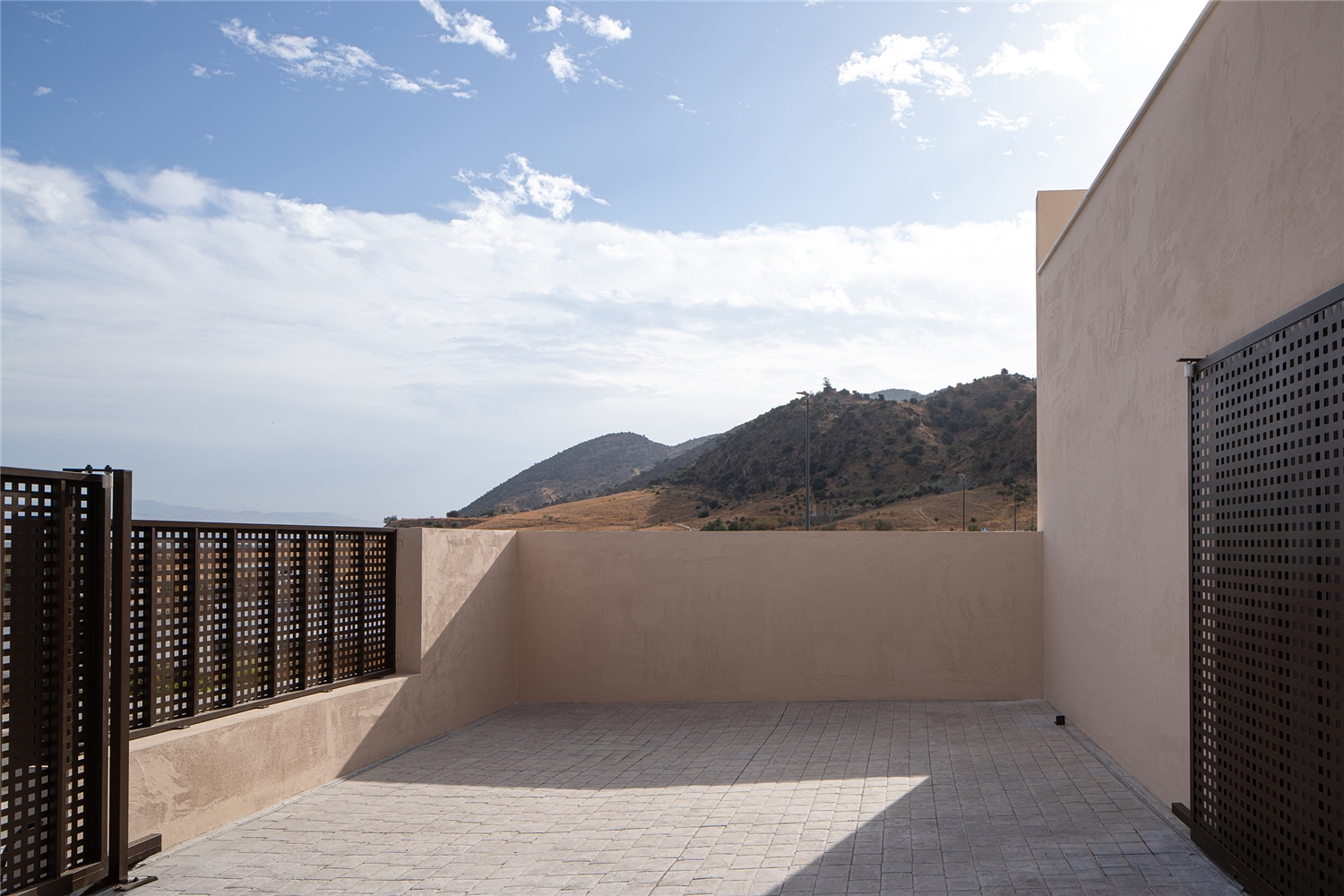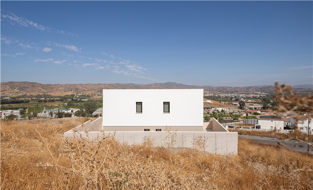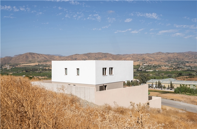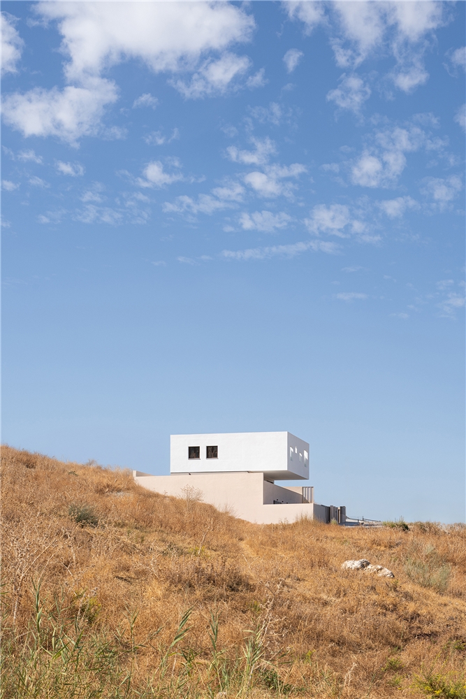 Esa mirada elevada convierte la vivienda en una especie de acrópolis doméstica. Desde lo alto, los habitantes establecen una relación con su territorio que no es agresiva ni defensiva, sino contemplativa. La casa observa el paisaje como aquel que se asoma discretamente por la mirilla de su puerta al escuchar un ruido en el portal: con curiosidad, pero también con prudencia; con deseo de entender lo que ocurre fuera, pero preservando la intimidad de lo que sucede dentro. Ese juego constante entre protección y apertura define el carácter del proyecto.