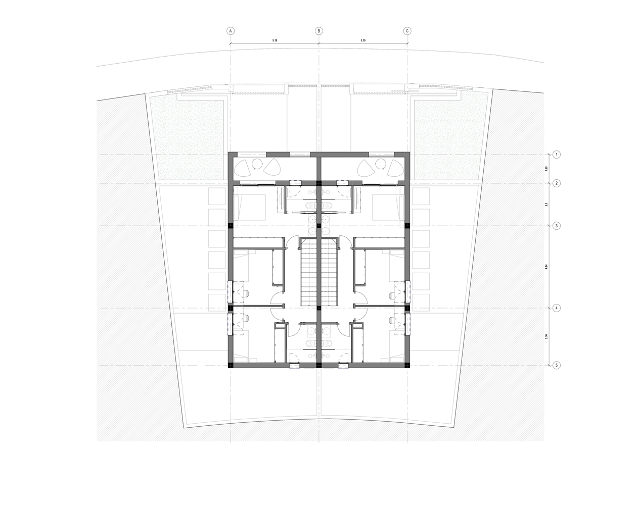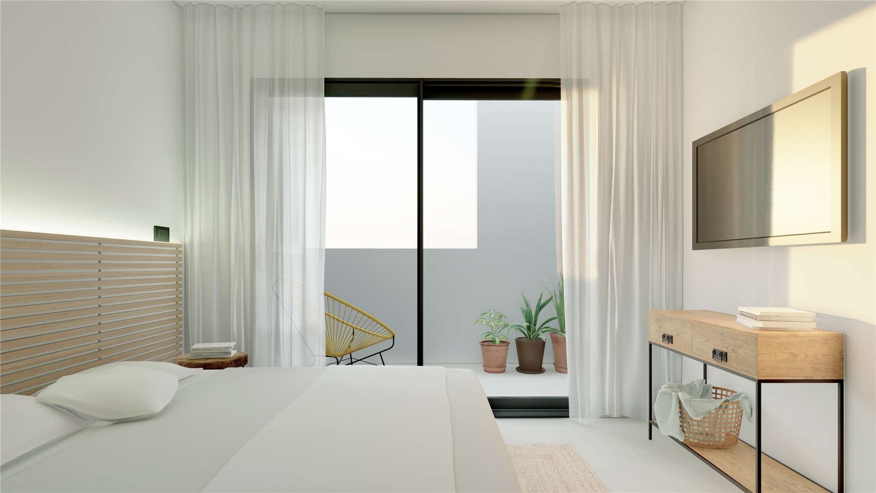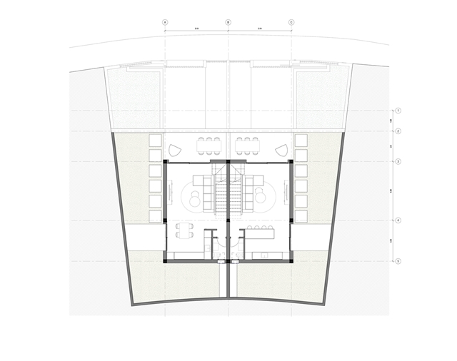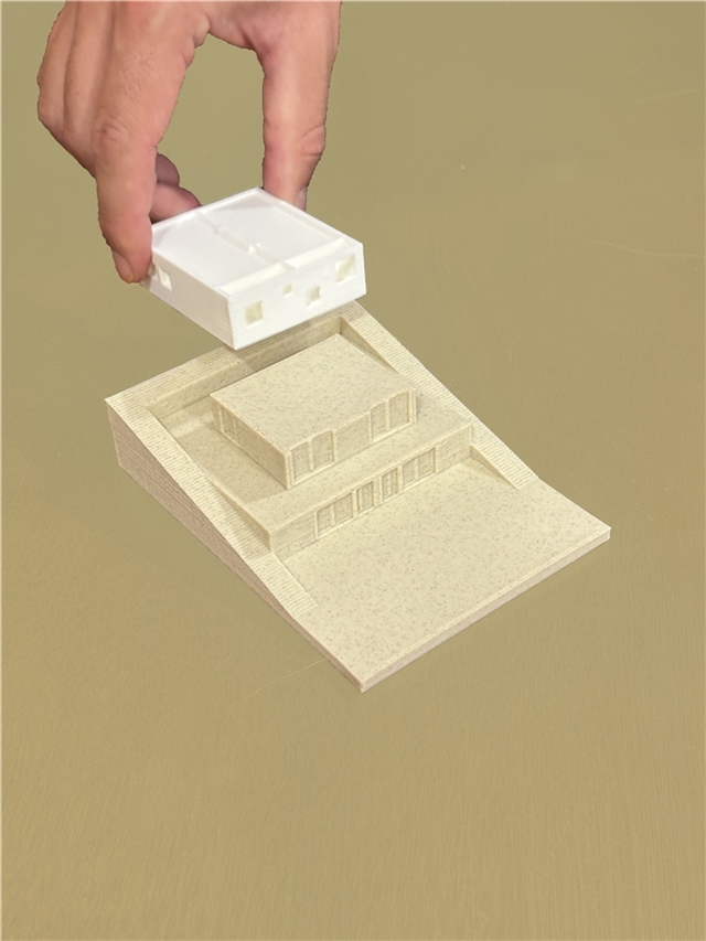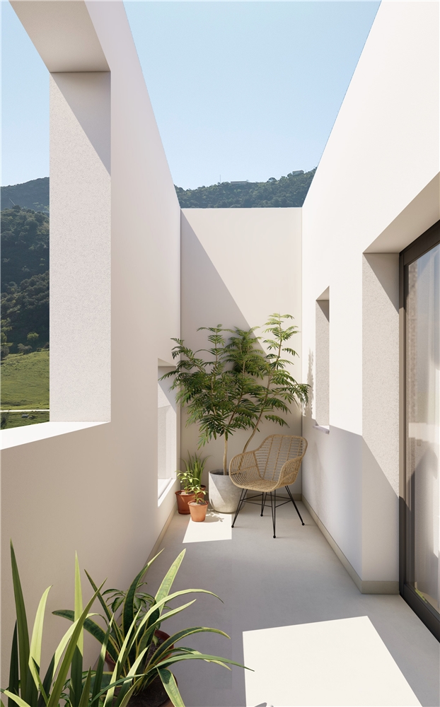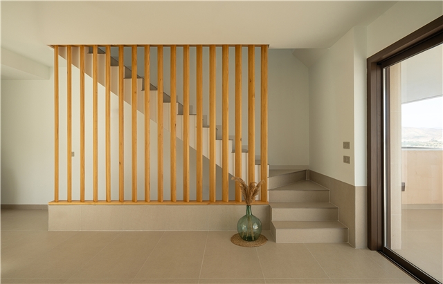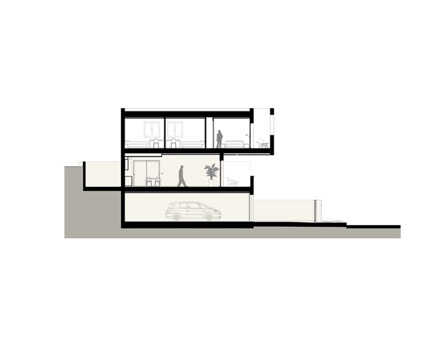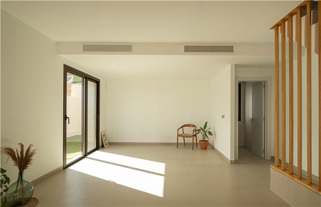 Sobre ese basamento emerge un plano horizontal donde se asienta la vida cotidiana. Es una plataforma que organiza el habitar, un suelo continuo que ordena el día a día de forma silenciosa y generosa. La domesticidad se despliega así en un espacio que combina refugio y apertura, densidad y ligereza. Cada estancia se orienta de forma estratégica, garantizando que la relación entre interior y exterior nunca sea directa o impuesta, sino filtrada y medida.