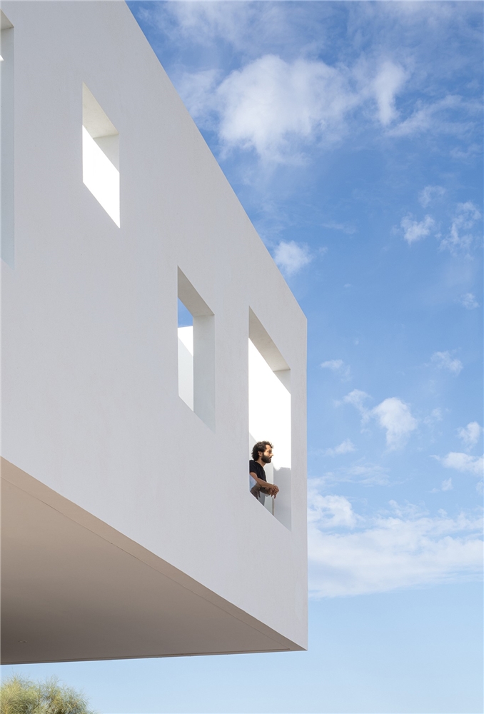 Una pieza pura y perforada que se eleva sobre la tierra para habitar desde la intimidad. Un refugio contemporáneo que mira al entorno sin ser visto.