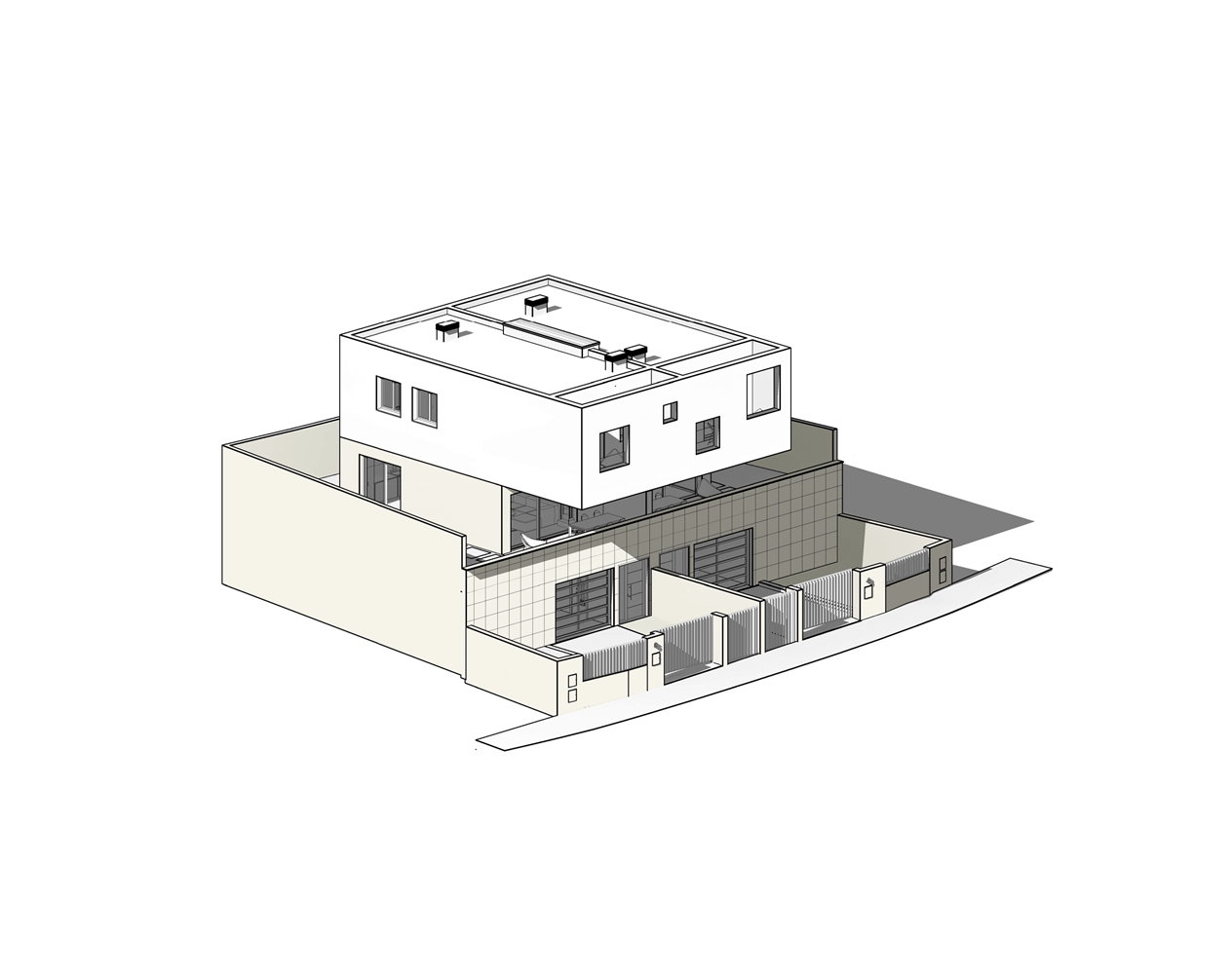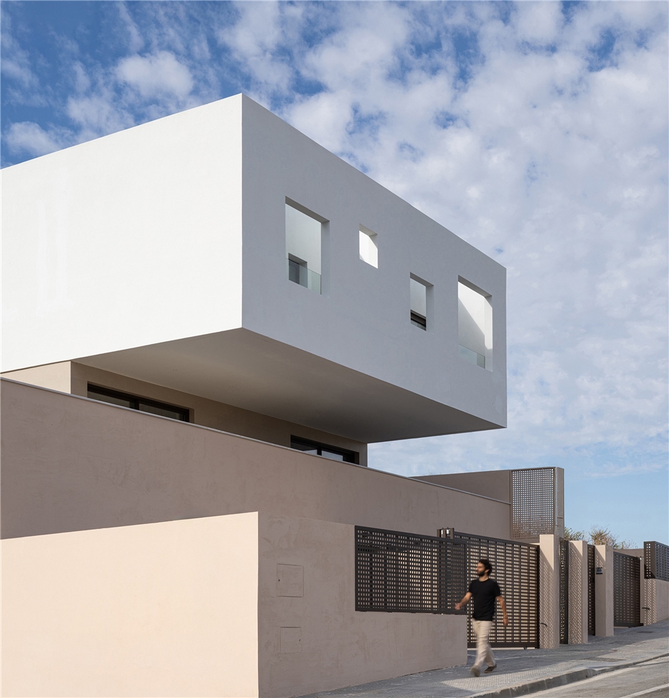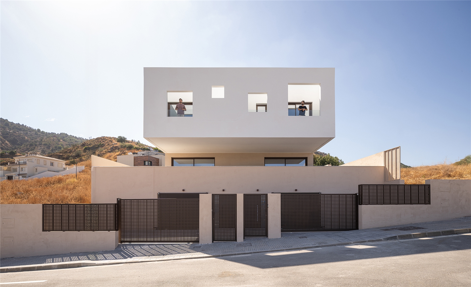 El Búnker Volador es, ante todo, una declaración de intenciones: una pieza arquitectónica que se eleva con firmeza, que observa sin ser observada y que hace de la privacidad no un límite, sino un lenguaje. El proyecto parte de una idea sencilla y rotunda —un búnker—, pero inmediatamente la desarma a través de la paradoja: un búnker que no se entierra, sino que vuela. Un volumen blanco, casi ingrávido, que mira a su entorno desde la seguridad de sus huecos cuidadosamente tallados, como si cada abertura fuera un gesto preciso, un ojo que elige cuándo y hacia dónde mirar.