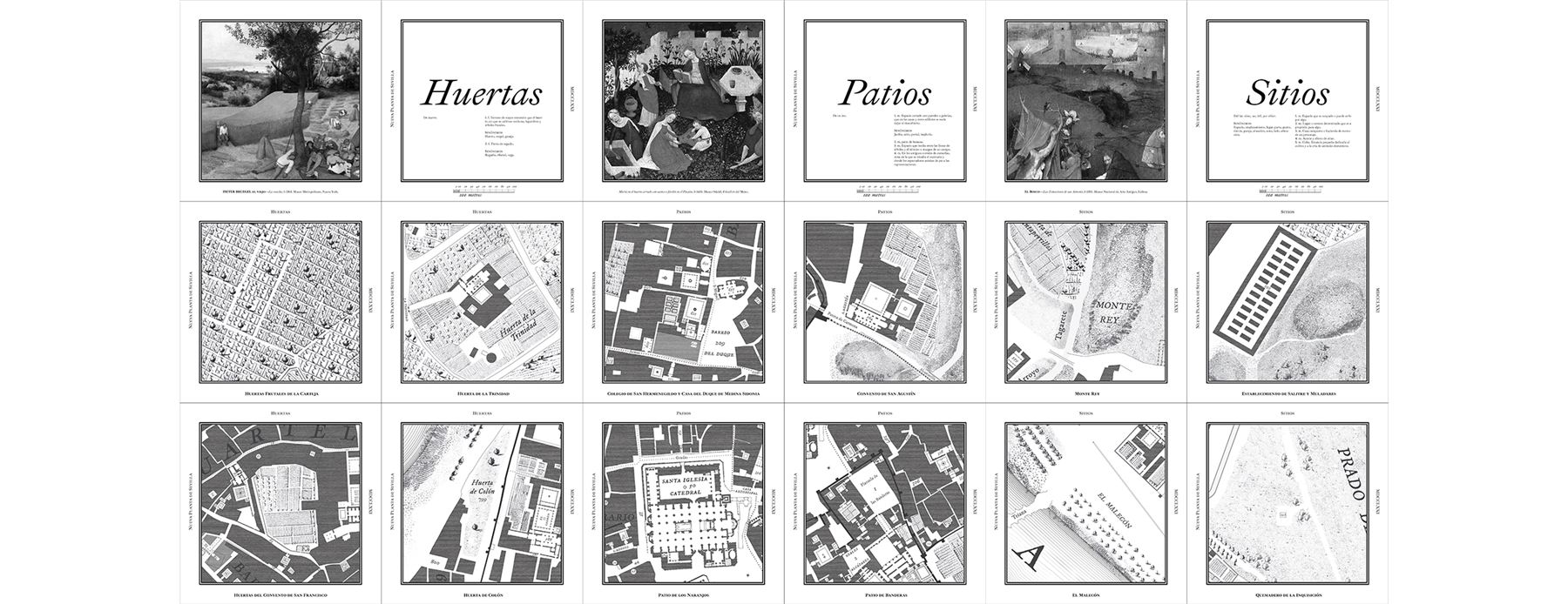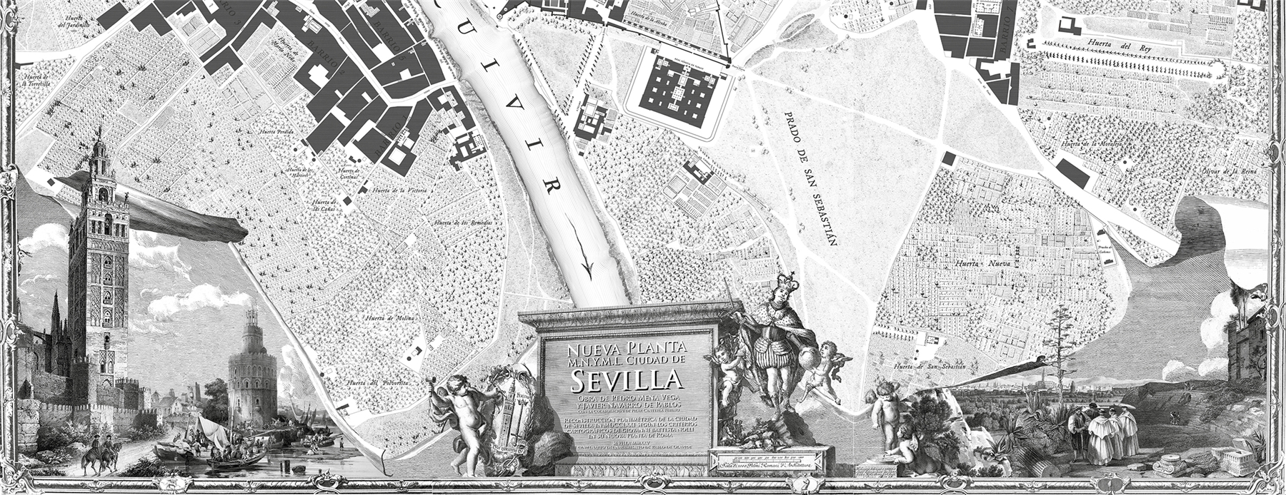 Nolli necesitó para publicar su obra maestra doce años, diecinueve planchas grabadas, toda la pericia técnica de un equipo altamente cualificado y el firme apoyo de la Iglesia, que le había brindado un salvoconducto para visitar y delinear hasta su último edificio. ¿Y si, en lugar de haber tenido que encarar continuos obstáculos en la Sevilla de su época, Olavide hubiera tenido la misma suerte? Esta es la pregunta que nos hicimos hace ahora siete años dos arquitectos recién egresados, compartiendo la misma ambición insensata que había llevado al lombardo a la quiebra y al limeño frente a la Inquisición. El resultado, tras muchas horas de intenso trabajo y la ayuda inestimable de la compañera Pilar Canterla, es la Nueva Planta de Sevilla, la visión de lo que pudo ser un levantamiento planimétrico de la Híspalis del último cuarto del siglo XVIII si las circunstancias hubieran sido más romanas. Los 1097 lugares señalados van desde elementos claramente reconocibles del callejero actual como la catedral, la plaza de San Francisco o la Alameda a oscuras referencias a sitios perdidos como la posada de Baviera, la cuesta de la Niña o el huerto de la Imagen, todos los cuales convivían en la Sevilla real del momento representado. Apoyados en una ingente labor previa de recopilación de plantas de edificios, padrones de vecinos, visitas a archivos y fotos furtivas a planos de evacuación de incendios, ofrecemos este trabajo como el mejor homenaje que sabemos hacer al lugar donde hemos nacido.