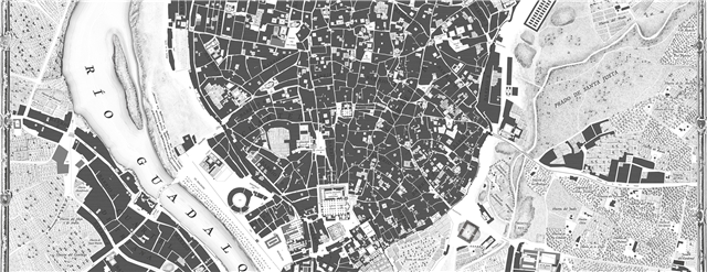 Reconstrucción planimétrica de la ciudad de Sevilla a finales del siglo XVIII, aplicando los criterios cartográficos de Giovanni Battista Nolli en su Nuova Pianta di Roma.