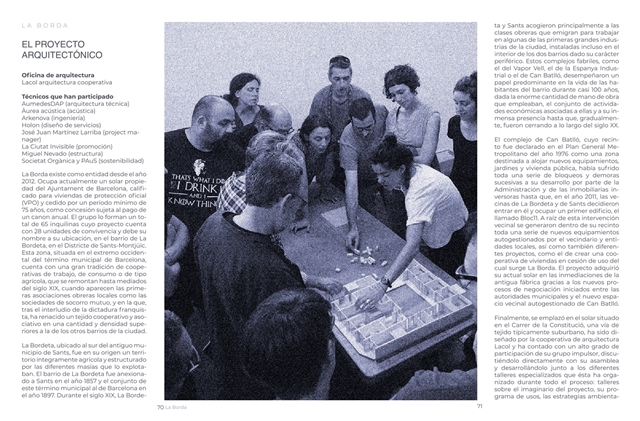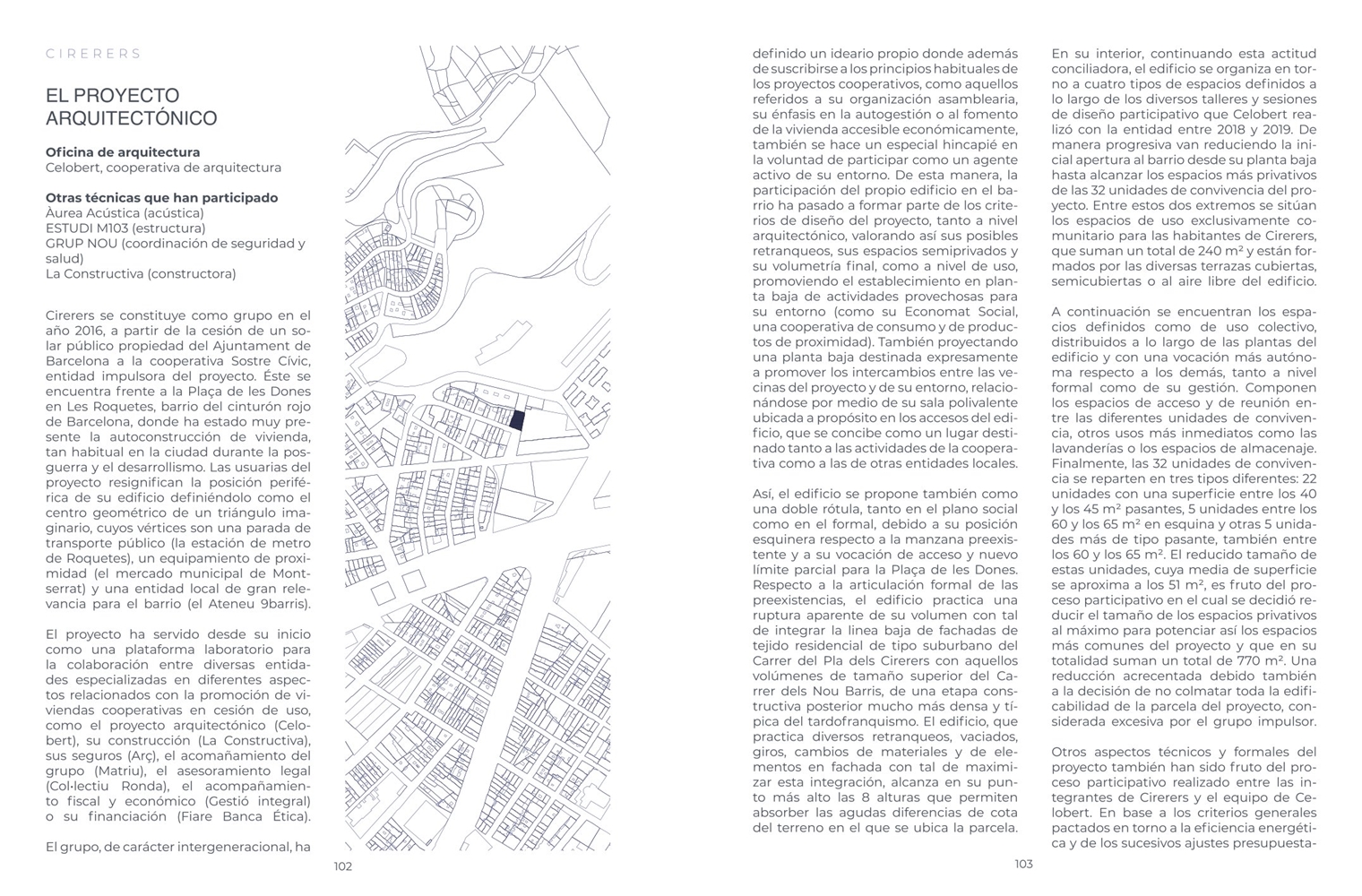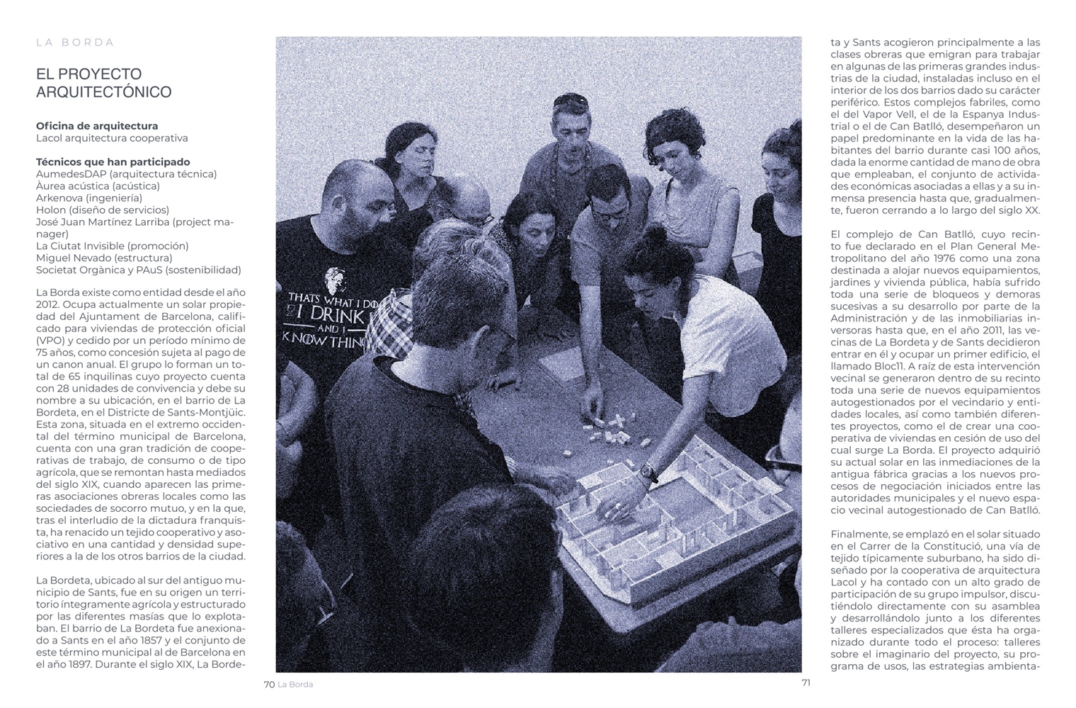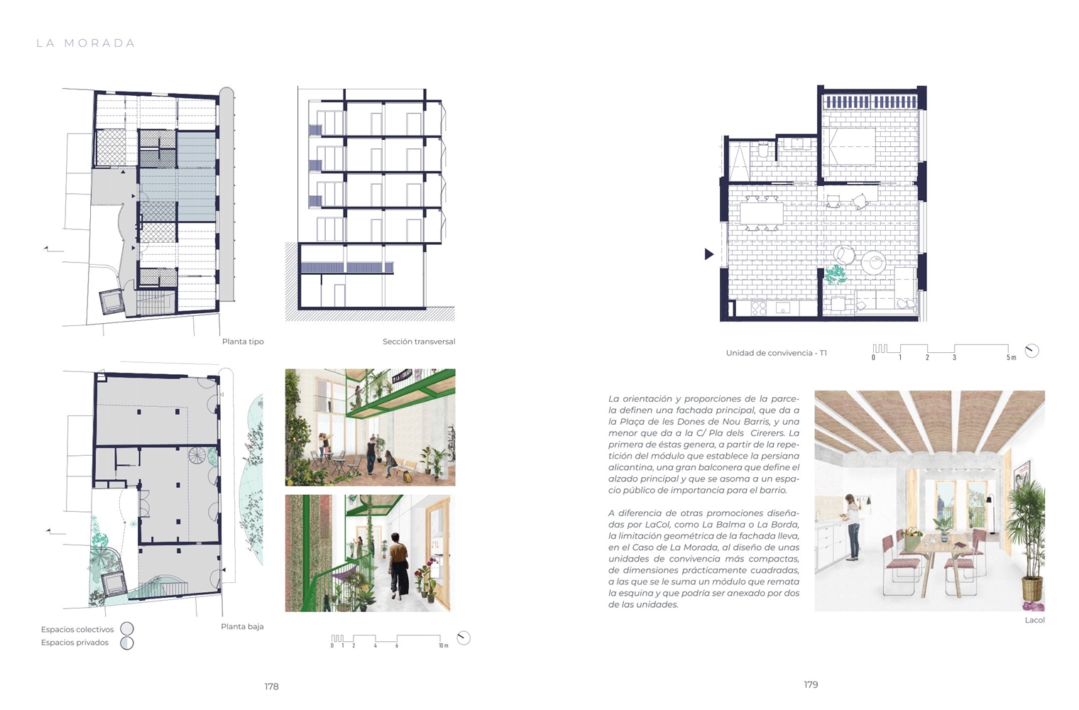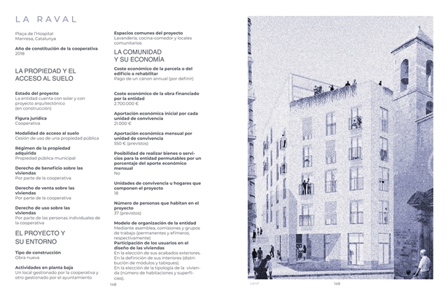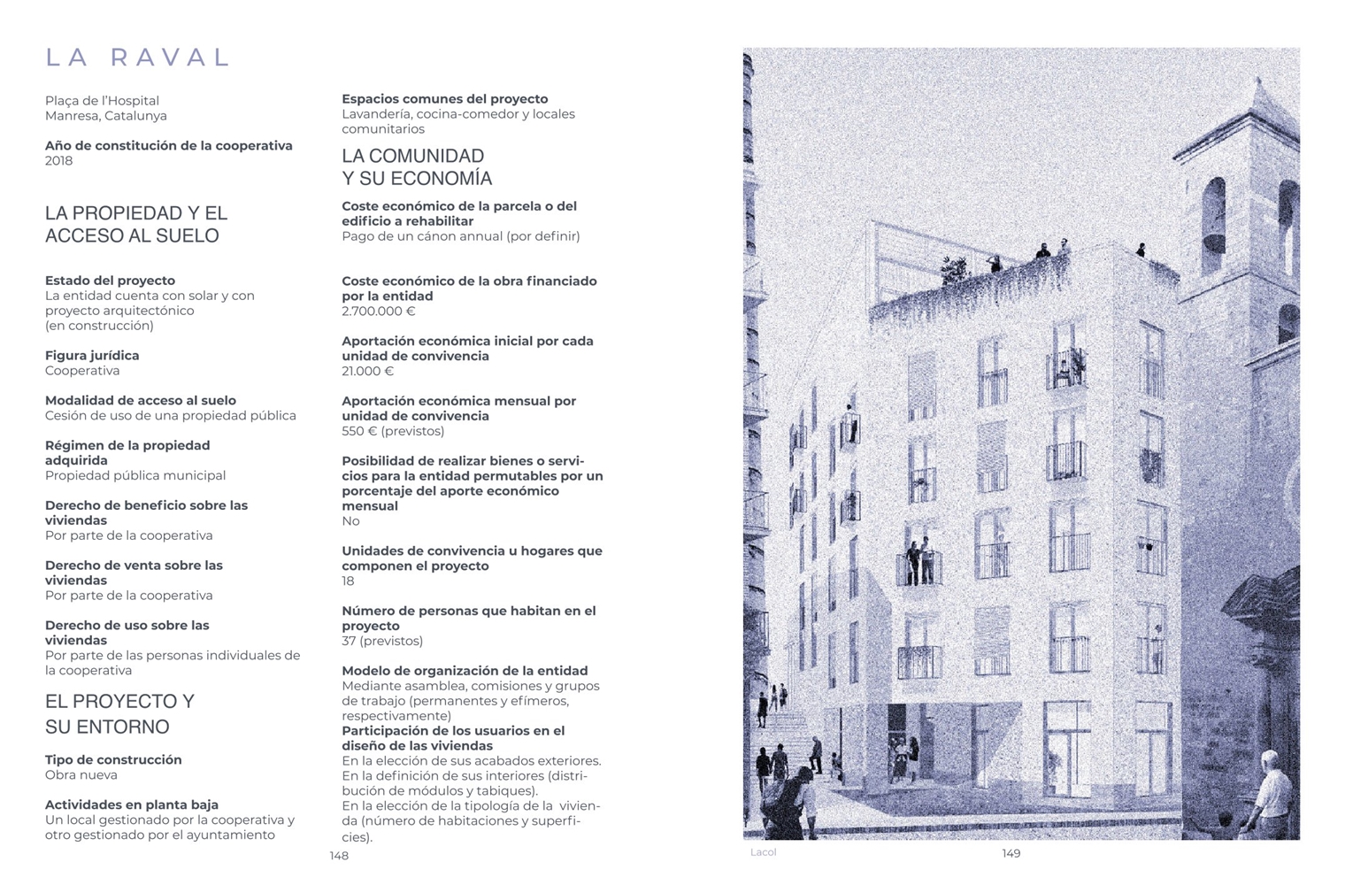 El trabajo de campo combinó visitas, entrevistas semiestructuradas, documentación arquitectónica y registros audiovisuales. Se priorizaron experiencias consolidadas o en fases avanzadas de construcción para ofrecer ejemplos replicables. Entre los proyectos documentados figuran Princesa49, La Borda, Clau Mestra, Can70, Entrepatios Las Carolinas, Cirerers, Ruderal, Ametxe, PAX Astronautas, La Chalmeta, Axuntase, La Raval, Cohousing Bustarviejo, El Ciempiés, La Morada, La Balma, Trabensol y Cala Fou.