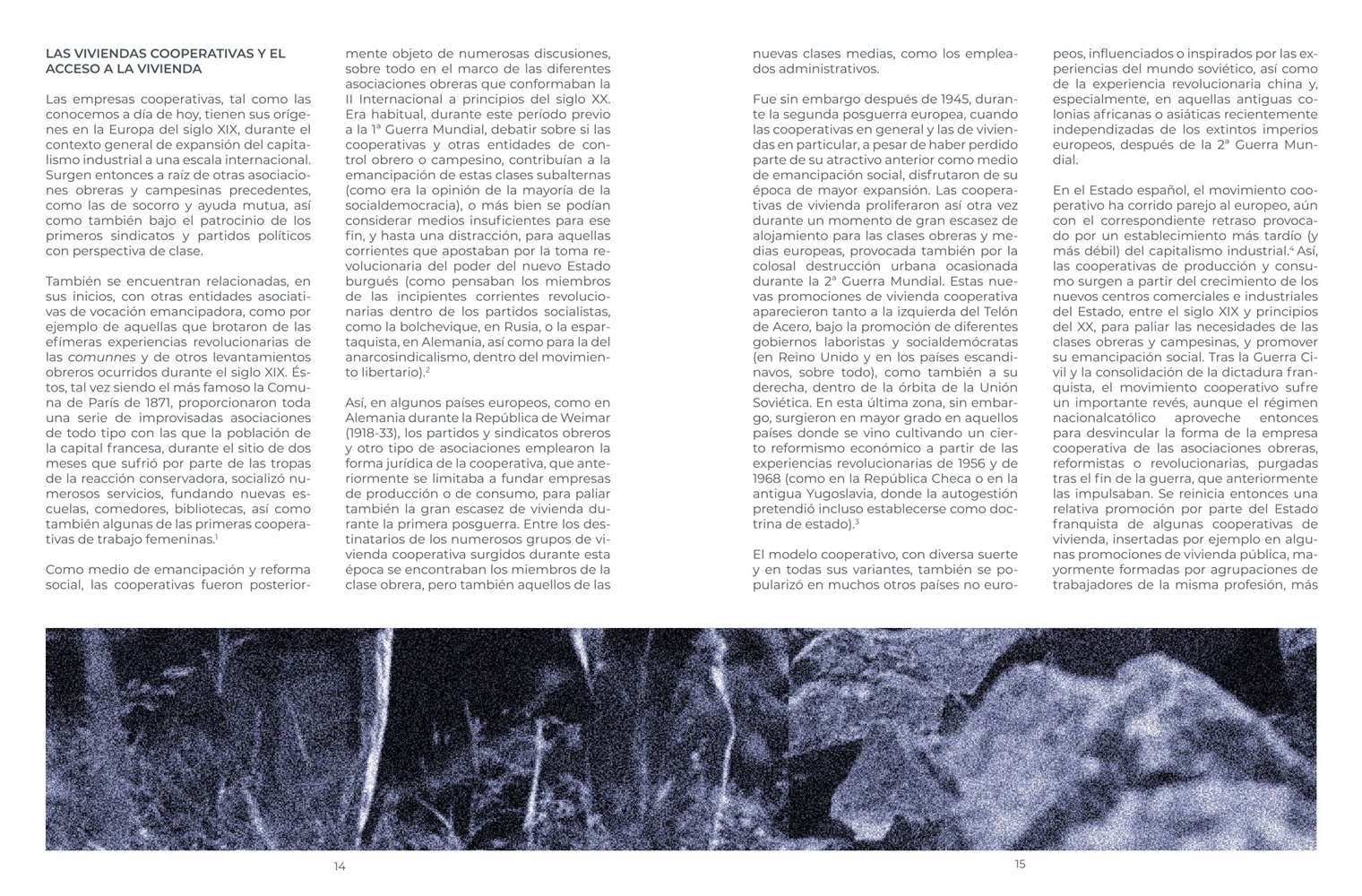 Las Formas de Habitar de la Vivienda Cooperativa es un proyecto de Investigación‑Acción iniciado en 2021 que documenta, analiza y difunde el modelo de vivienda cooperativa en cesión de uso en el Estado español. Mediante un documental y un libro‑catálogo, recoge testimonios directos —audiovisuales y escritos— de comunidades que habitan distintas iniciativas cooperativas, para visibilizar sus prácticas cotidianas, formas de organización y estrategias arquitectónicas que sostienen la convivencia colectiva.