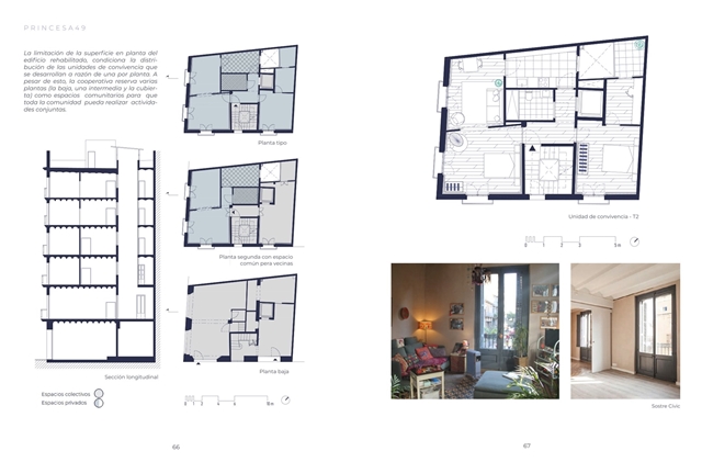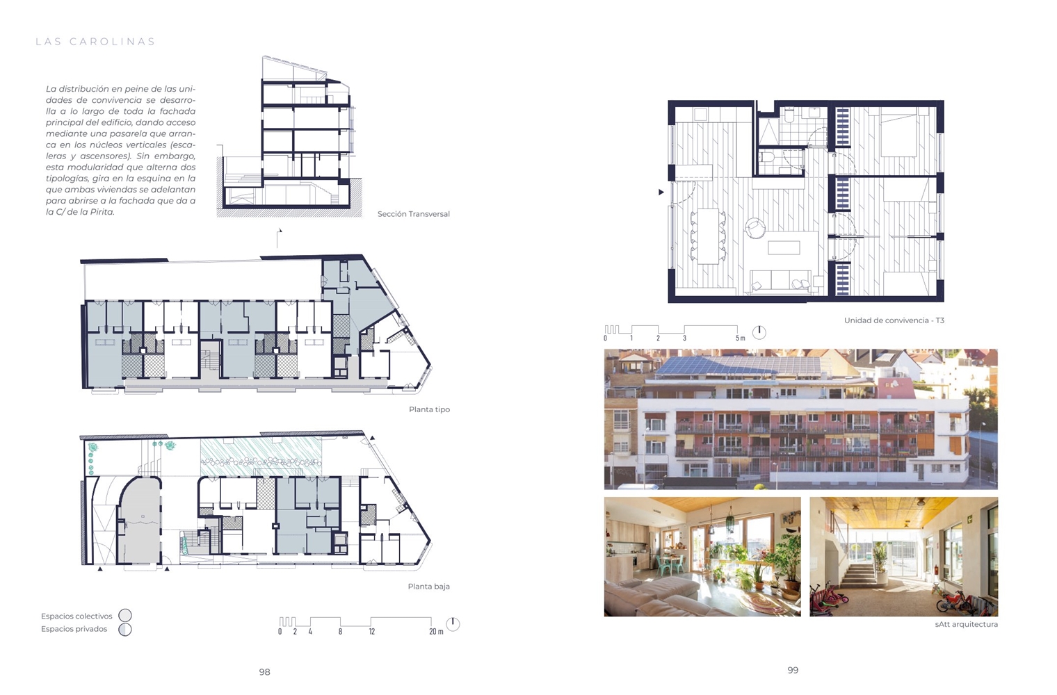 Los materiales resultantes combinan narrativa testimonial, análisis y documentación técnica. El documental prioriza las voces de las residentes y las imágenes de los espacios para mostrar prácticas y elementos arquitectónicos que facilitan la convivencia. El libro‑catálogo incorpora fichas de proyecto con datos técnicos, planos, fotografías y ensayos que contextualizan cada experiencia en relación con políticas de vivienda, marcos legales y modelos de financiación. Ambos productos son herramientas abiertas y gratuitas, de carácter divulgativo y técnico dirigidas a ciudadanía, profesionales, administraciones y movimientos sociales.