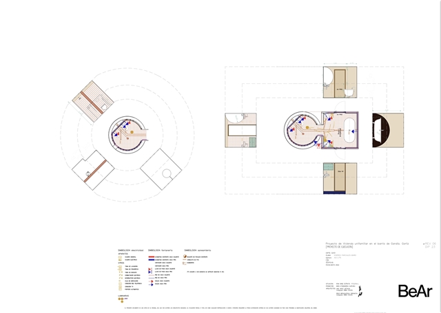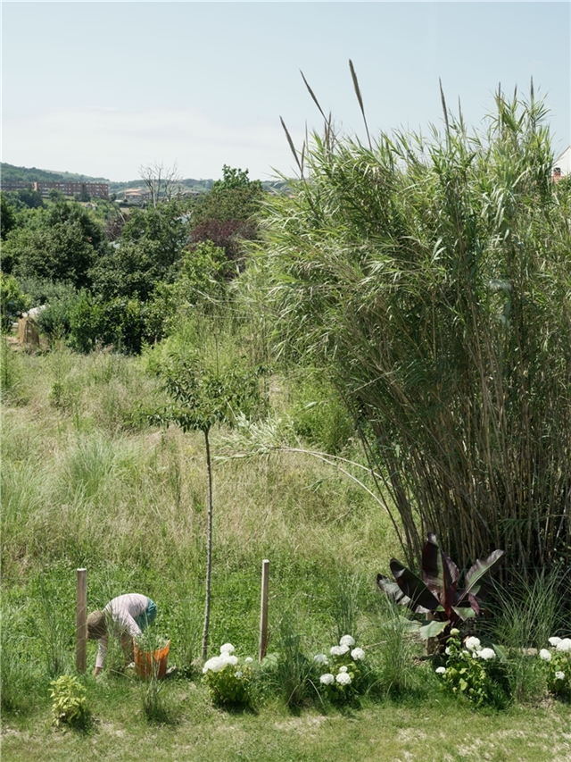 Pero la vivienda no se entiende sin otros ejes de internalidades como territorio y energía. Sobre todo implantación, con una precisa localización en la parcela desde el entendimiento de la misma como un pedazo de paisaje y su afán en un barrio parcelado de liberar todo el sustrato natural , mantener topografía original que recoge las precipitaciones, reforzar su vegetación natural y recuperar el arroyo y humedal cercano con el máximo aporte de agua.