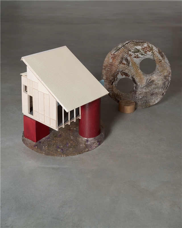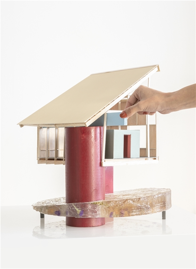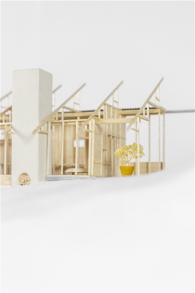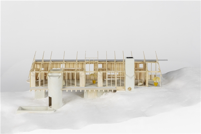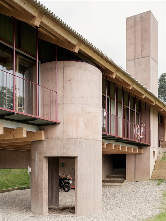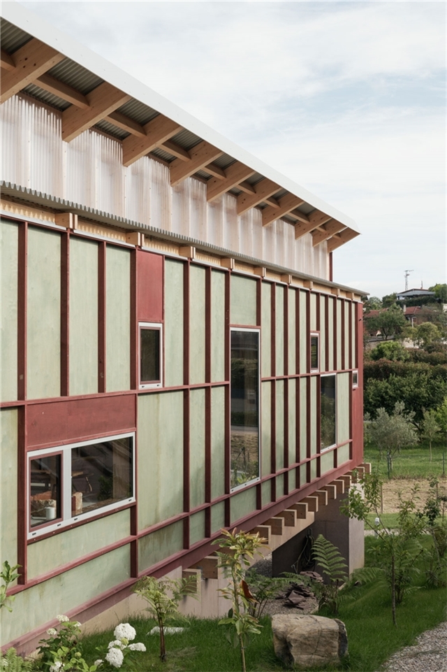 En definitiva es un intento de relación de material y territorio, madera y piedra, madera y paisaje. Los tableros se producen de manera local, se termotratan en un taller cercano , la madera se corta y prepara desde plantaciones de Pino del entorno y los equipos de montaje, colocadores y carpinteros son especialistas en cubiertas de caseríos. Pero no solo una relación material entre territorio y construcción, si no una más importante como es la simbólica. No hay cambio real sin sueño. Por ello, la fijación del proyecto en construir una nueva idea de lo popular, una nueva idea de tradición, de la especificidad local que invite a la apropiación colectiva de nuevas maneras de construir. La separación de su condición romántica y su mezcla juguetona y desprejuiciada de lo real, lo pretendido y lo burda imitación es lo que aquí se busca. Una tradición popular, abierta y un poco punki. Pues no hay mejor fijador del cambio que lo bello.
