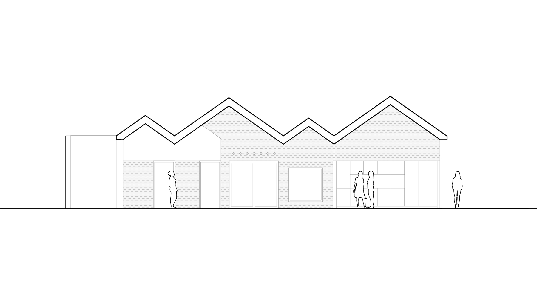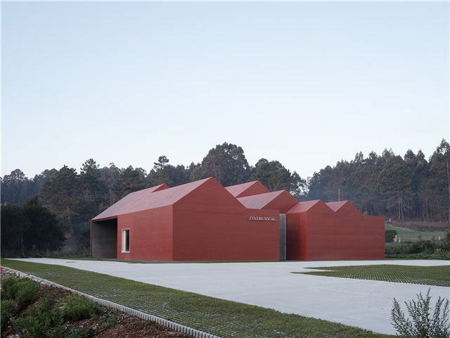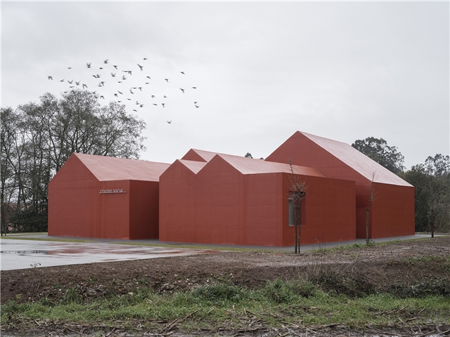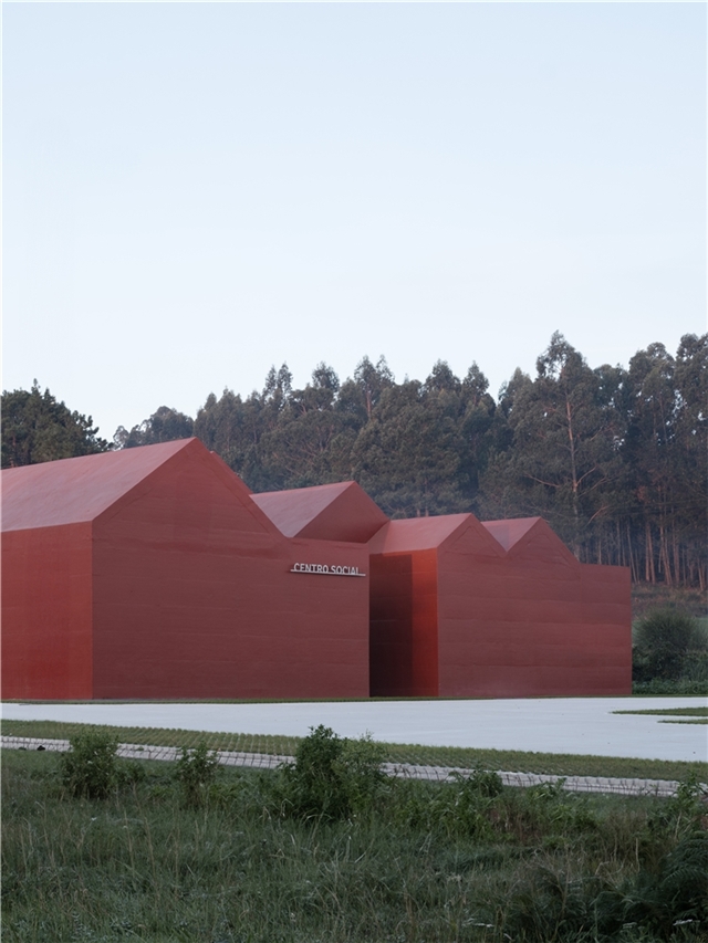 Situado en un pequeño valle visible desde las tres carreteras próximas, el edificio asume también una condición representativa, convirtiéndose en un referente reconocible para la parroquia. Formalmente, el proyecto representa la suma de distintas casas a dos aguas que, al unirse, conforman un único volumen. Esta agregación no es solo una decisión compositiva, sino una declaración de intenciones: la comunidad entendida como la suma de individualidades. Cada cubierta evoca la escala doméstica, reconocible y cercana, mientras que su unión construye una nueva identidad colectiva.