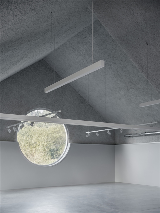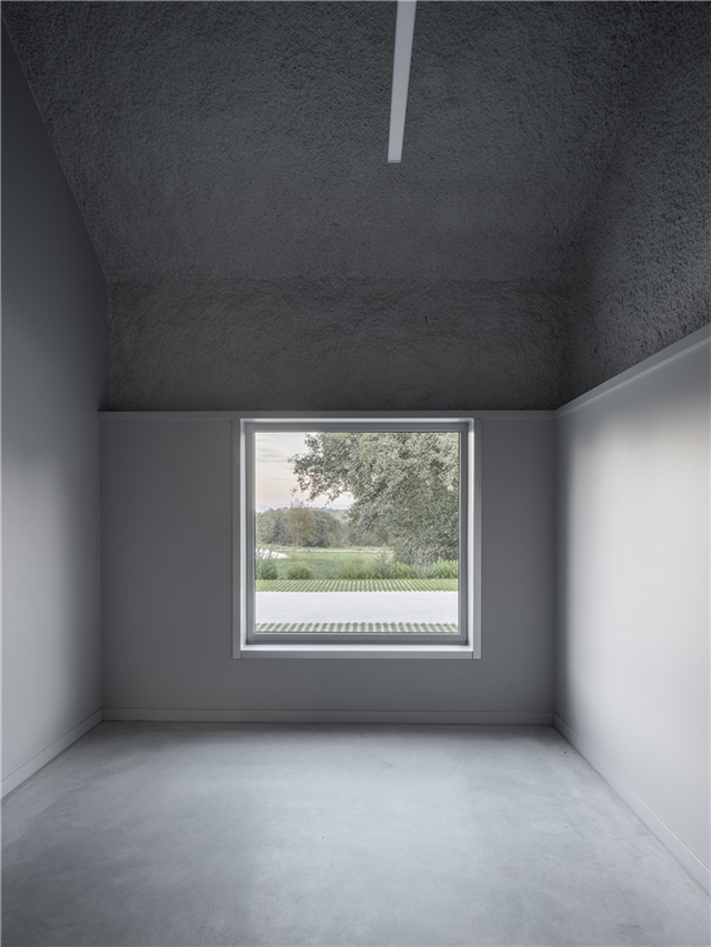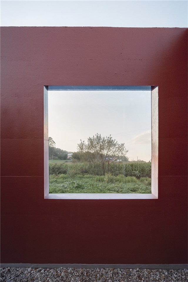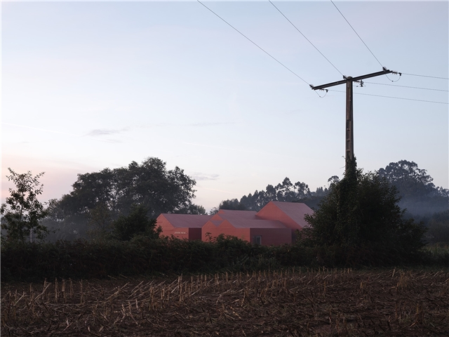 La propuesta toma como referencia la arquitectura popular gallega —caracterizada por gruesos muros, pequeñas aberturas y cubiertas pronunciadas— reinterpretando estos elementos desde una lógica contemporánea. Este aspecto exterior cerrado y opaco, sorprende en su interior, donde los patios, el porche cubierto que se extiende del salón de actos y una serie de huecos estratégicos iluminan todas las estancias.