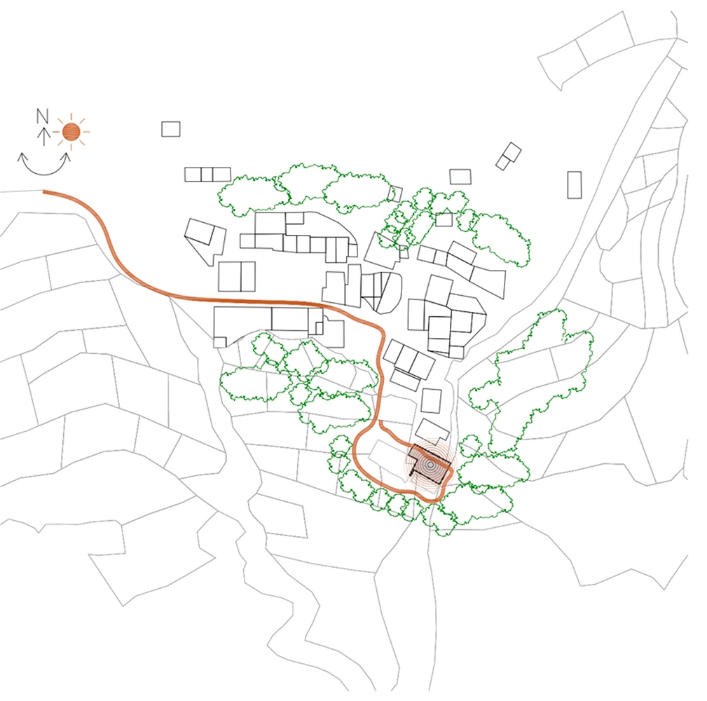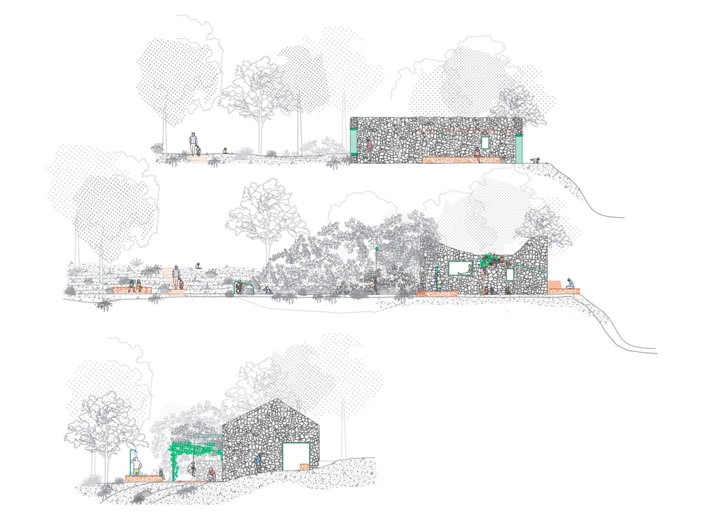 No quisimos alterar el paseo ya existente sino que, a partir de la observación del uso que los habitantes ya realizaban en el lugar, nuestra propuesta, de intervenciones mínimas, mejora la experiencia del recorrido y la estancia en un nuevo espacio común recuperado alrededor de la antigua almazara.