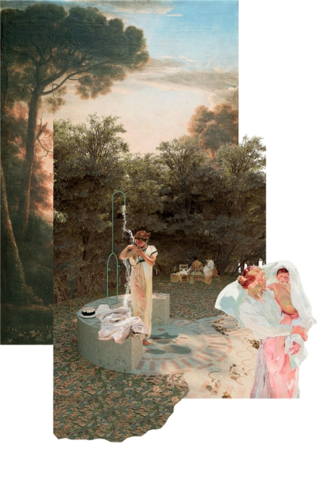 Un poco más allá, donde el camino cambia de dirección; en aquel punto en el que mejores vistas tuvimos durante las visitas, aparece un nuevo espacio de estar, un banco mirador sobre el barranco y los bosques. A nuestras espaldas dejamos una nueva sombra de ramas, hojas y flores caducas sobre el antiguo lavadero, la que provoca la pérgola que recupera la geometría extinta de una cubierta a dos aguas, cuyos restos se aprecian aún en los muros de la almazara.