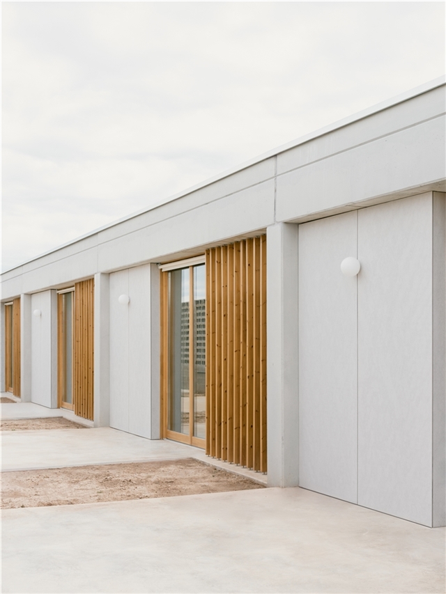 El sistema constructivo se basa en una edificación en seco y prefabricada, mediante pilares y forjados de losa alveolar de grandes luces que permiten generar espacios diáfanos, flexibles y fácilmente adaptables a futuras necesidades. Esta estrategia responde a una economía de medios consciente, optimizando recursos, reduciendo plazos y garantizando una alta durabilidad con bajo mantenimiento.
