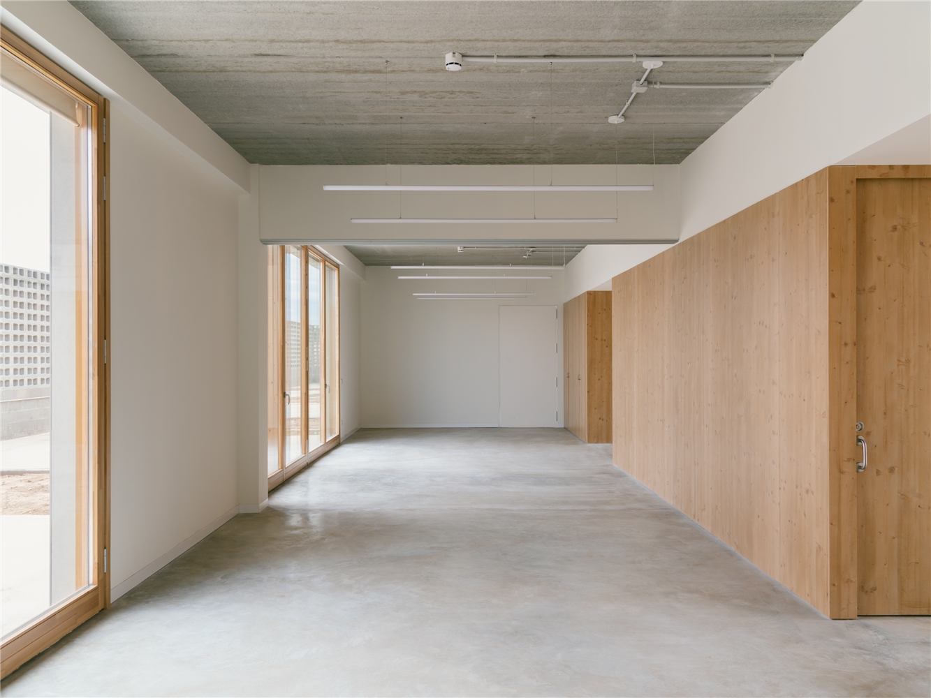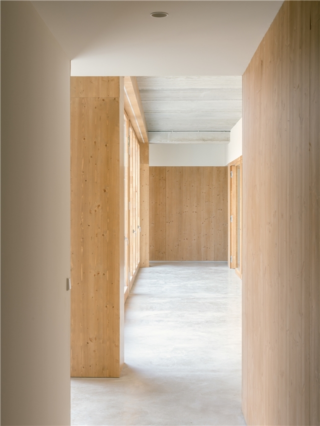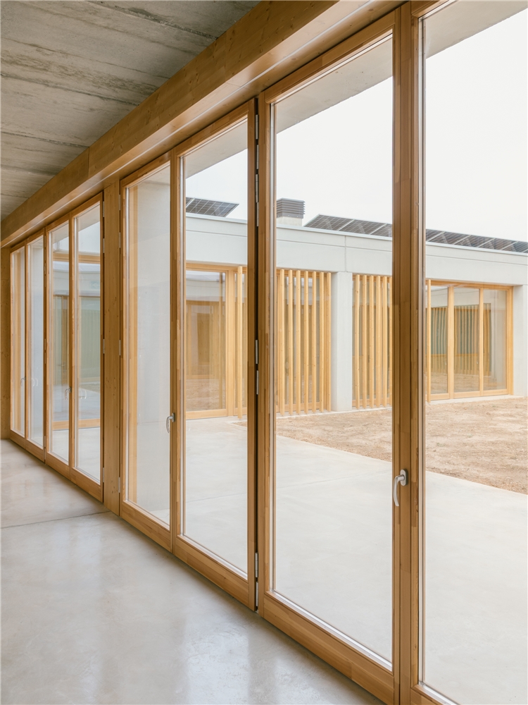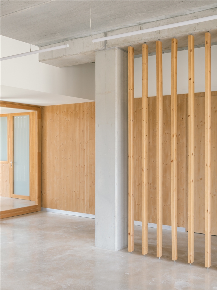 La materialidad se concibe como parte activa de la experiencia espacial. El uso de hormigón visto, madera y tonos claros construye ambientes serenos, cálidos y fácilmente legibles, donde los materiales nobles, empleados en estado casi crudo, están pensados para envejecer con dignidad, adquiriendo pátina y carácter con el paso del tiempo. La estructura, lejos de ocultarse, forma parte del paisaje interior y exterior, evitando revestimientos superfluos y poniendo en valor la honestidad constructiva.
