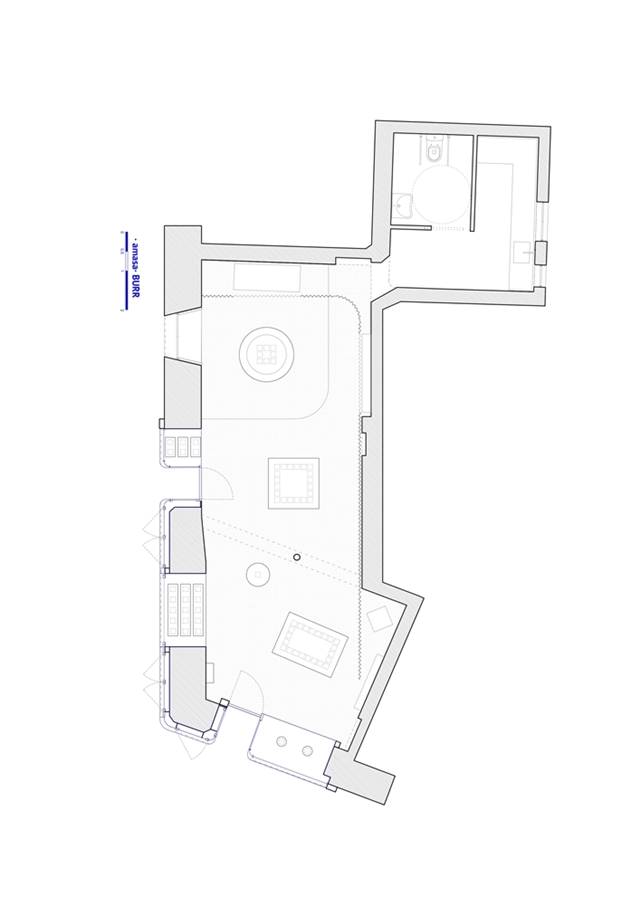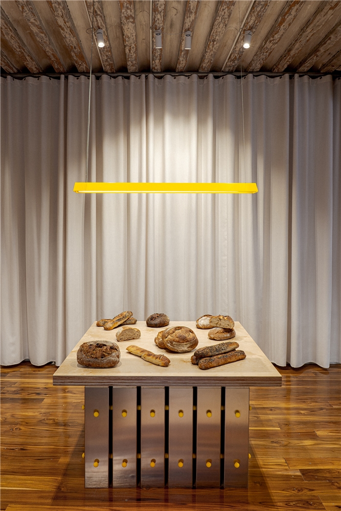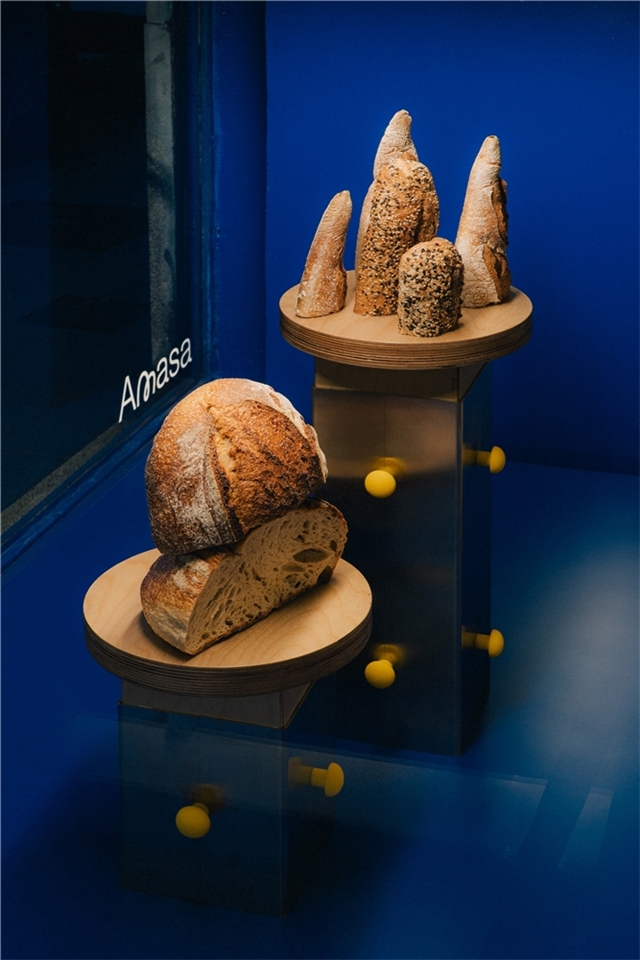 Con el objetivo de generar espacios identitarios para Amasa, obrador de masa madre, se planteó una estrategia de intervención sobre espacios existentes que ofreciera suficiente flexibilidad para adaptarse a distintas situaciones, creando al mismo tiempo ambientes reconocibles e identificables con la marca sin necesidad de replicarse formalmente. Se propone así un proceso homotético, más que una repetición literal.